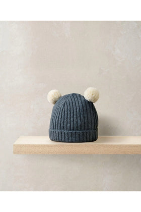 Mamas & Papas Rib Knit Hat with Pom Poms - Blue