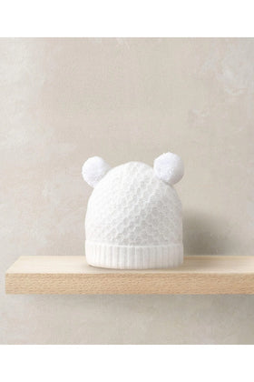 Mamas & Papas Rib Knit Hat & Pom Poms - White