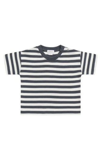 Jamie Kay Organic Cotton Waffle Leith Tee - Oliver Stripe Atlantic/Cloud