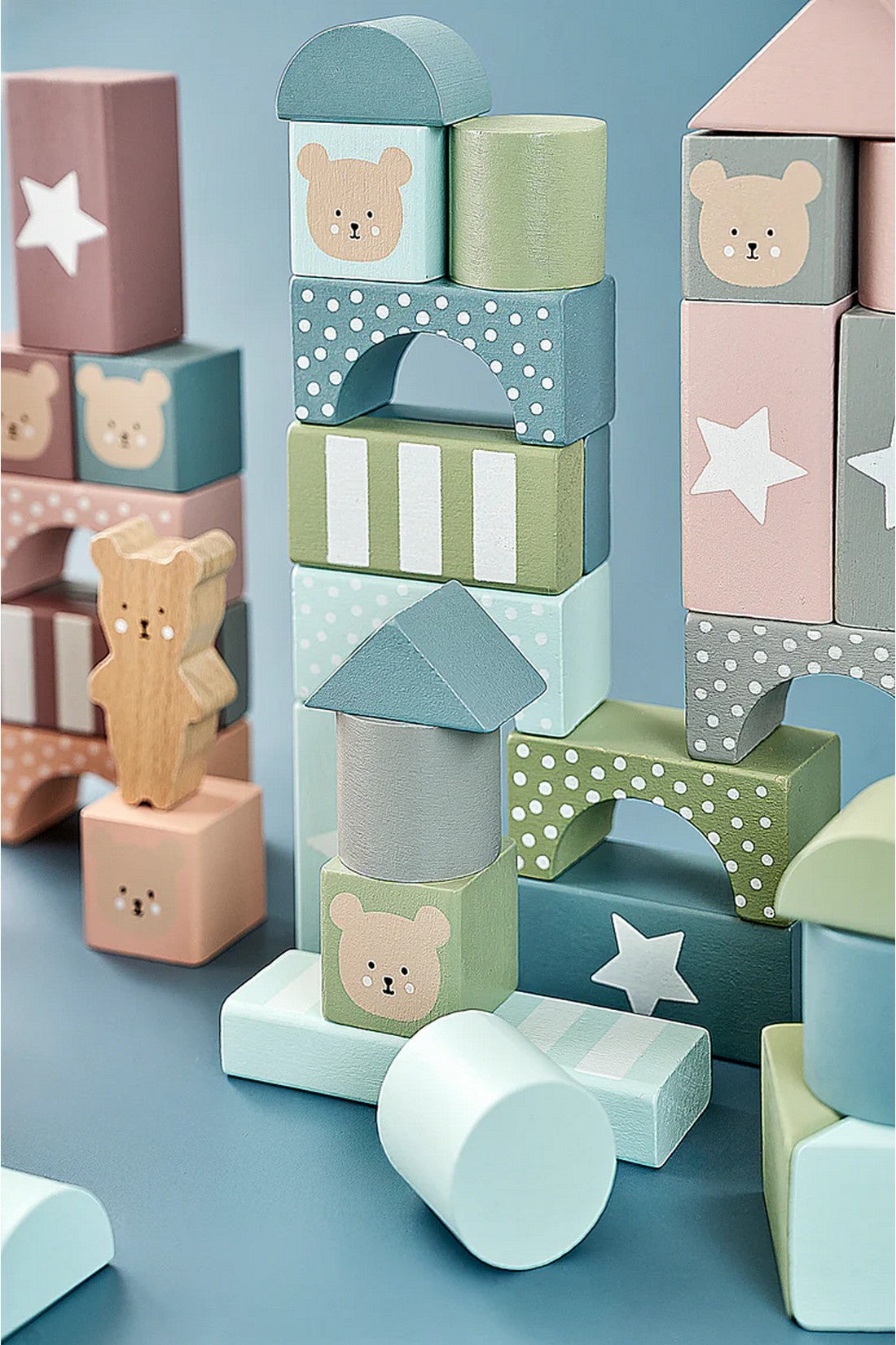 Building blocks with 49 wooden blocks of different colours and shapes. Build high towers, castles or whatever your fantasy can imagine! With these blocks your kids will be busy for hours.The building set consists of 49 blocks in beautiful colours with 7 different shapes. The children learns both coordination and patience and is able to discover both colour and form and their own abilities. Building blocks with infinite building variations. Your children can enjoy themselves on their own or you can build together! Tip: Build high towers that your child can knock down. A birthday present that is guaranteed to be a success.
