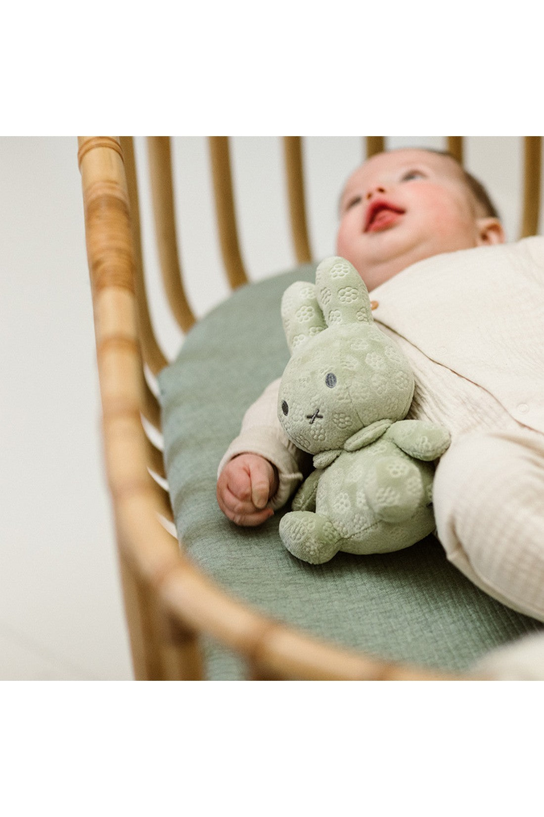 This cheerful Miffy cuddly toy is made to cuddle! The soft fabric has a unique design, in which punched flowers are incorporated. Miffy is approximately 20 cm tall. Very nice to use as an accessory in the nursery or children's room.
