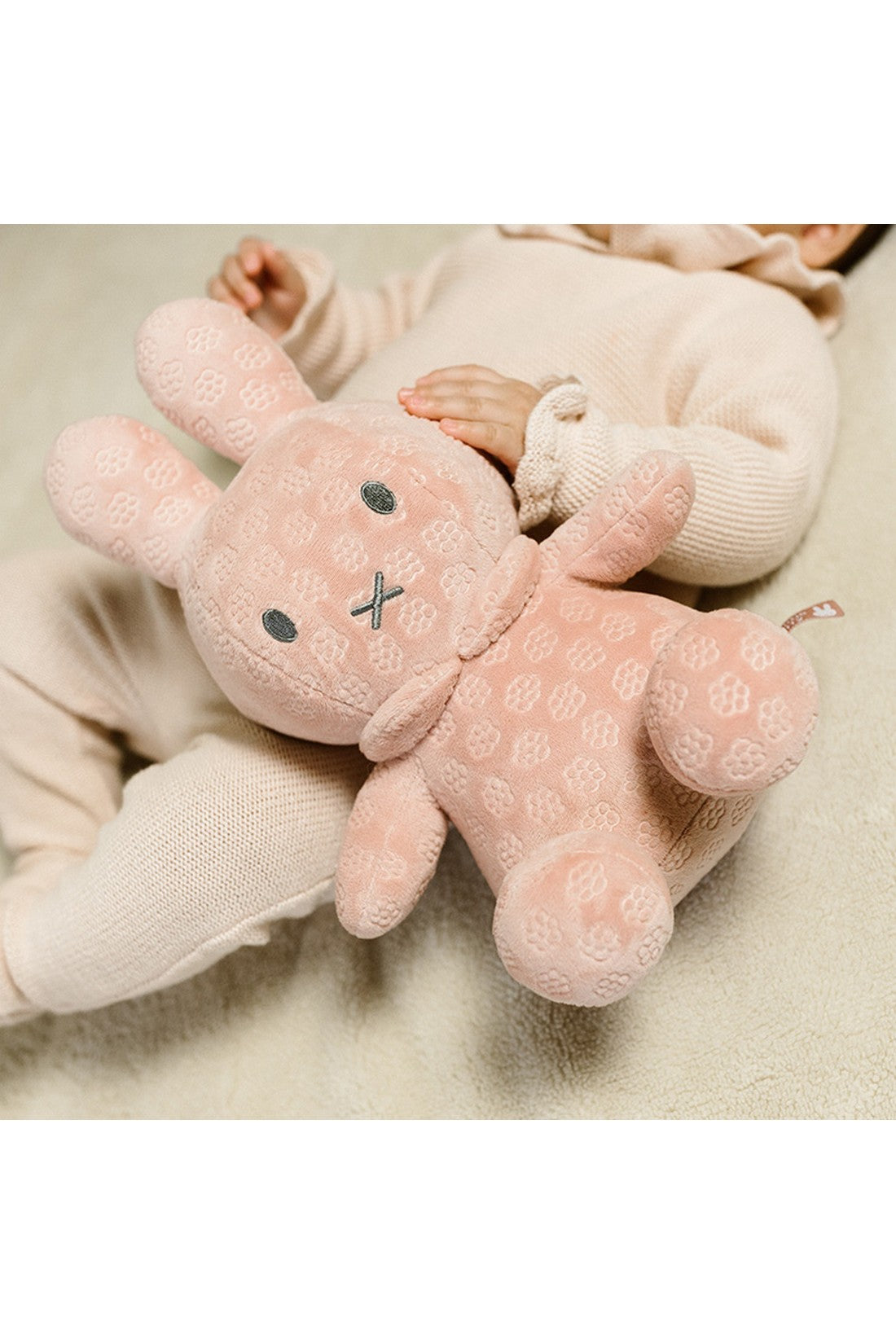 This cheerful miffy cuddly toy is made to cuddle! The soft fabric has a unique design, in which punched flowers are incorporated. Miffy is approximately 30 cm tall. Very nice to use as an accessory in the nursery or children's room.