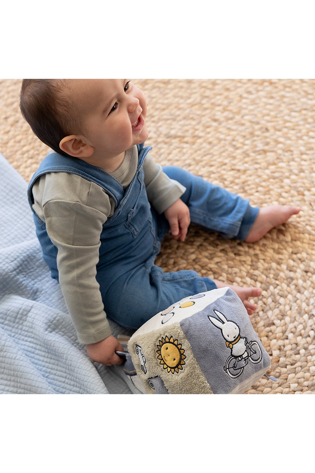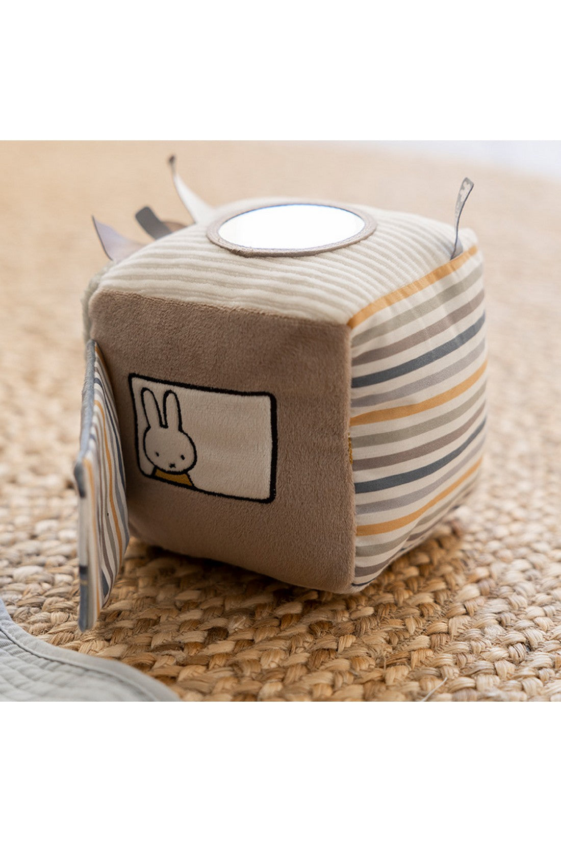 Your child will not get bored easily with this fun miffy activity cube. There is something different to discover on each side of the cube, such as fun images, different fabrics, labels to feel and a mirror. There is also a bell inside the cube for a nice rattle effect.