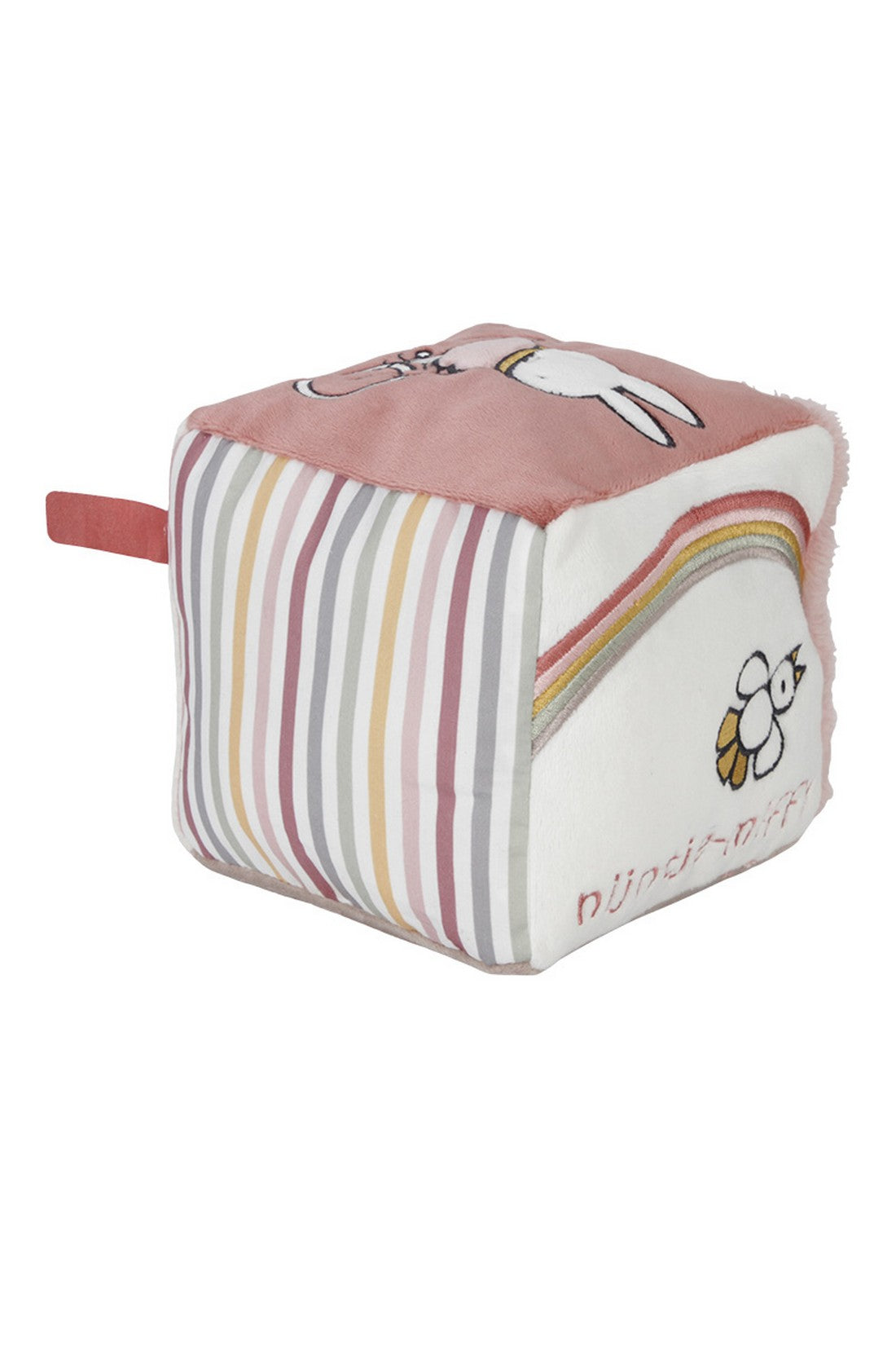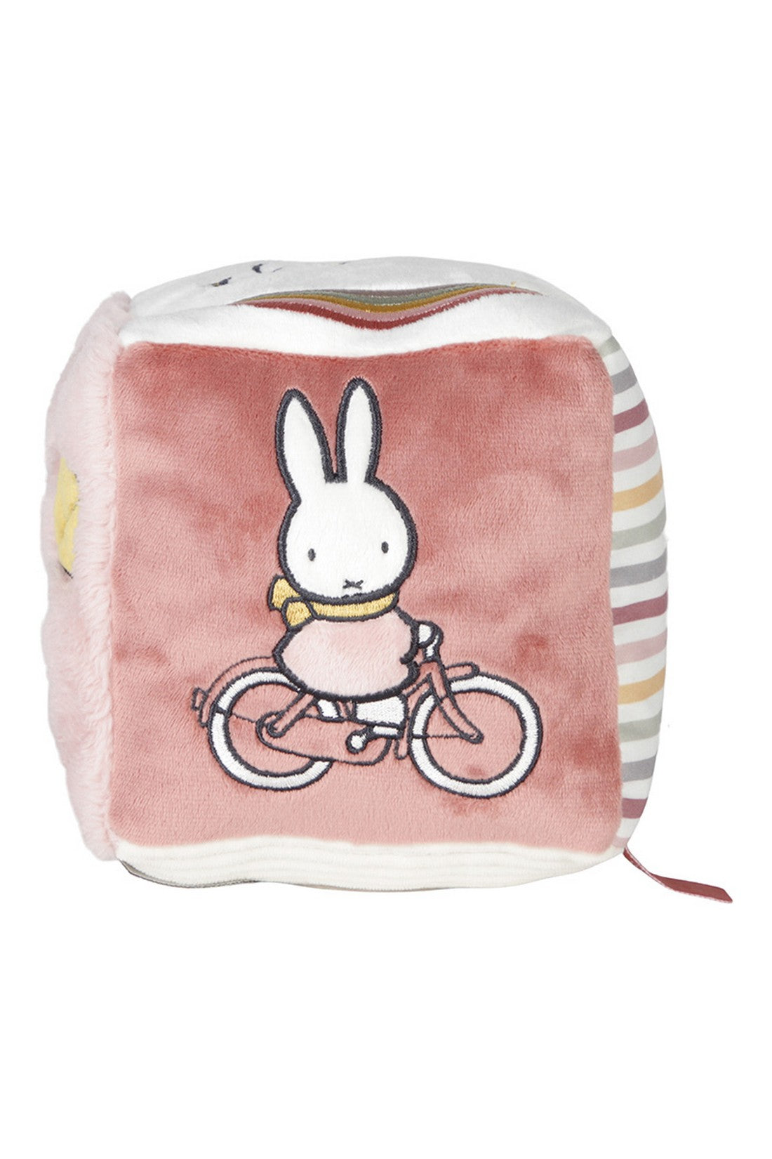 Your child will not get bored easily with this fun miffy activity cube. There is something different to discover on each side of the cube, such as fun images, different fabrics, labels to feel and a mirror. There is also a bell inside the cube for a nice rattle effect.