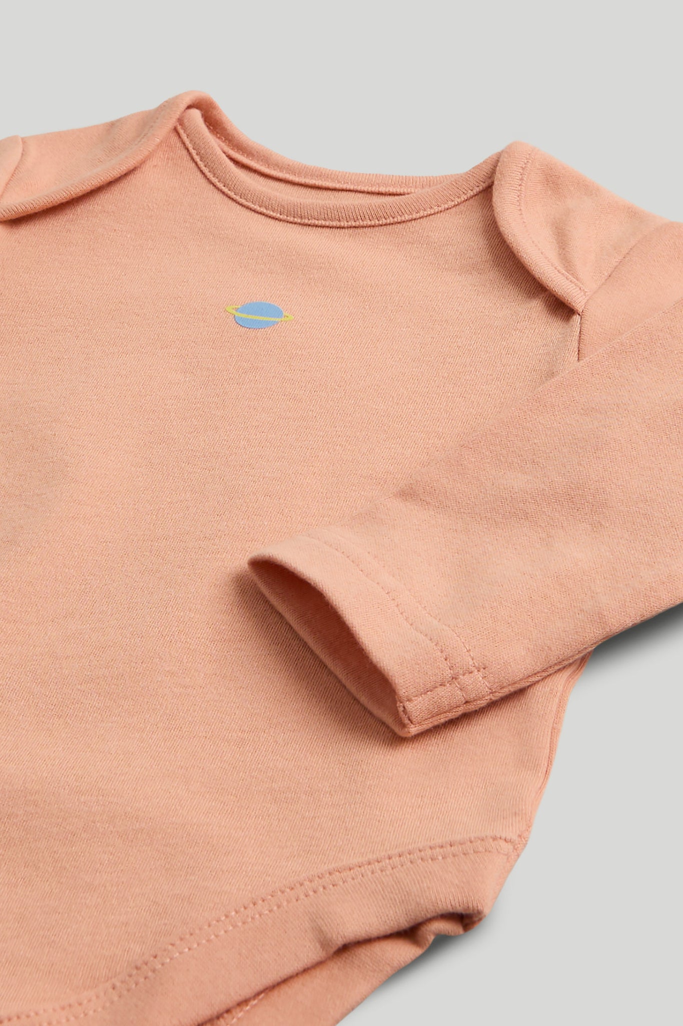 A set of long-sleeved bodysuits with fun space-themed prints to add cotton comfort to baby’s essentials. They’re perfect for keeping baby cosy day or night, with convenient poppers for quick changes.