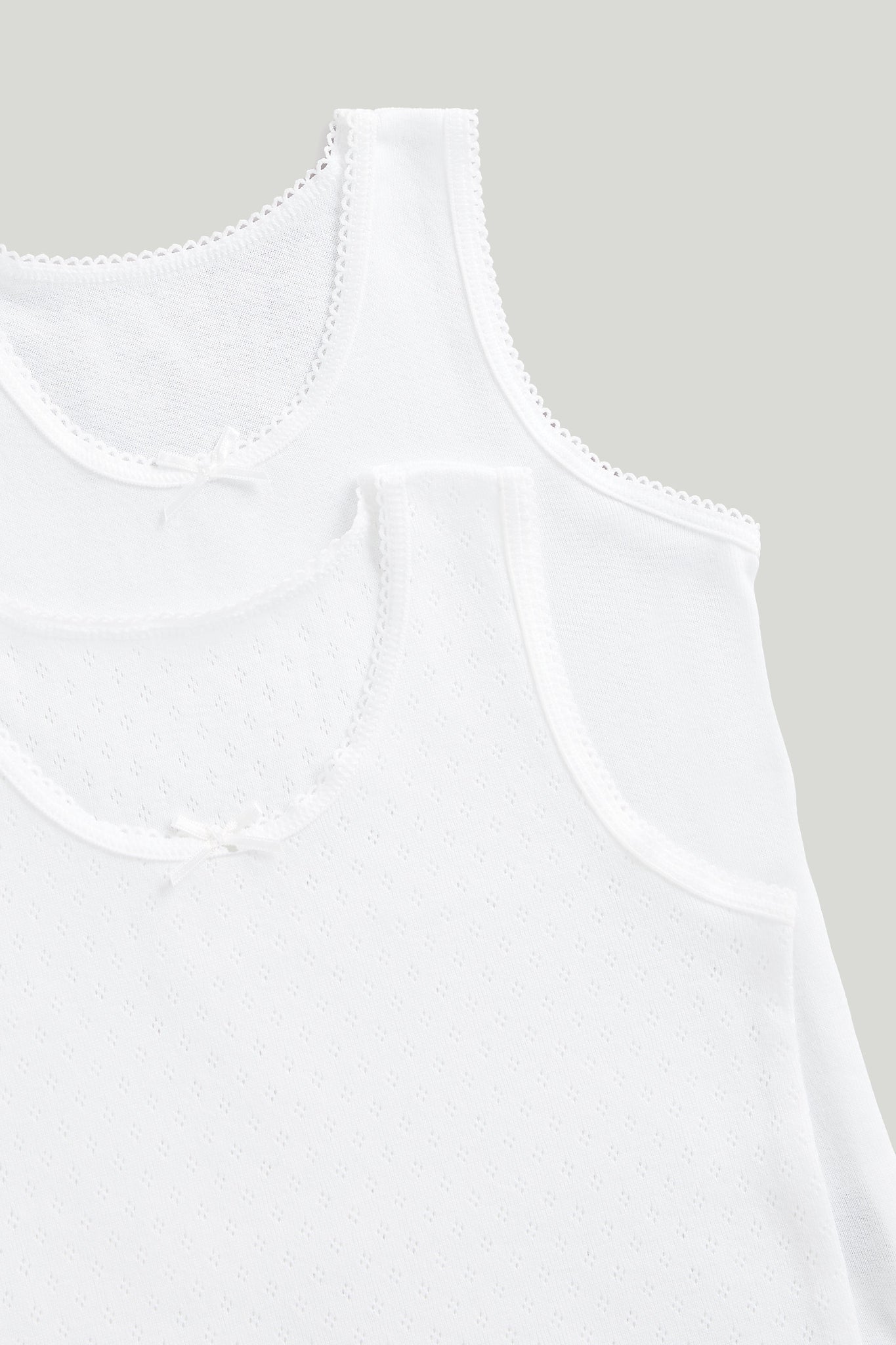 Pure cotton and cotton pointelle vests to provide a comfortable and breathable layer under any outfit.