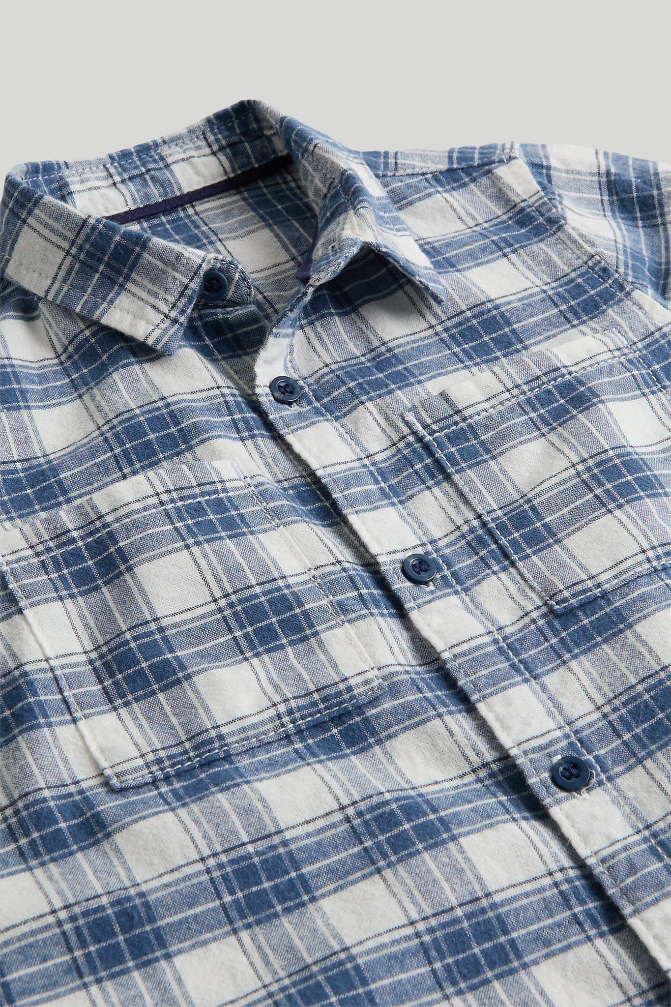 A layering set which includes a soft checked shirt and a relaxed-fit jersey tee. Crafted for all-day comfort, the shirt sleeves can be rolled and fastened with a button on warmer days.