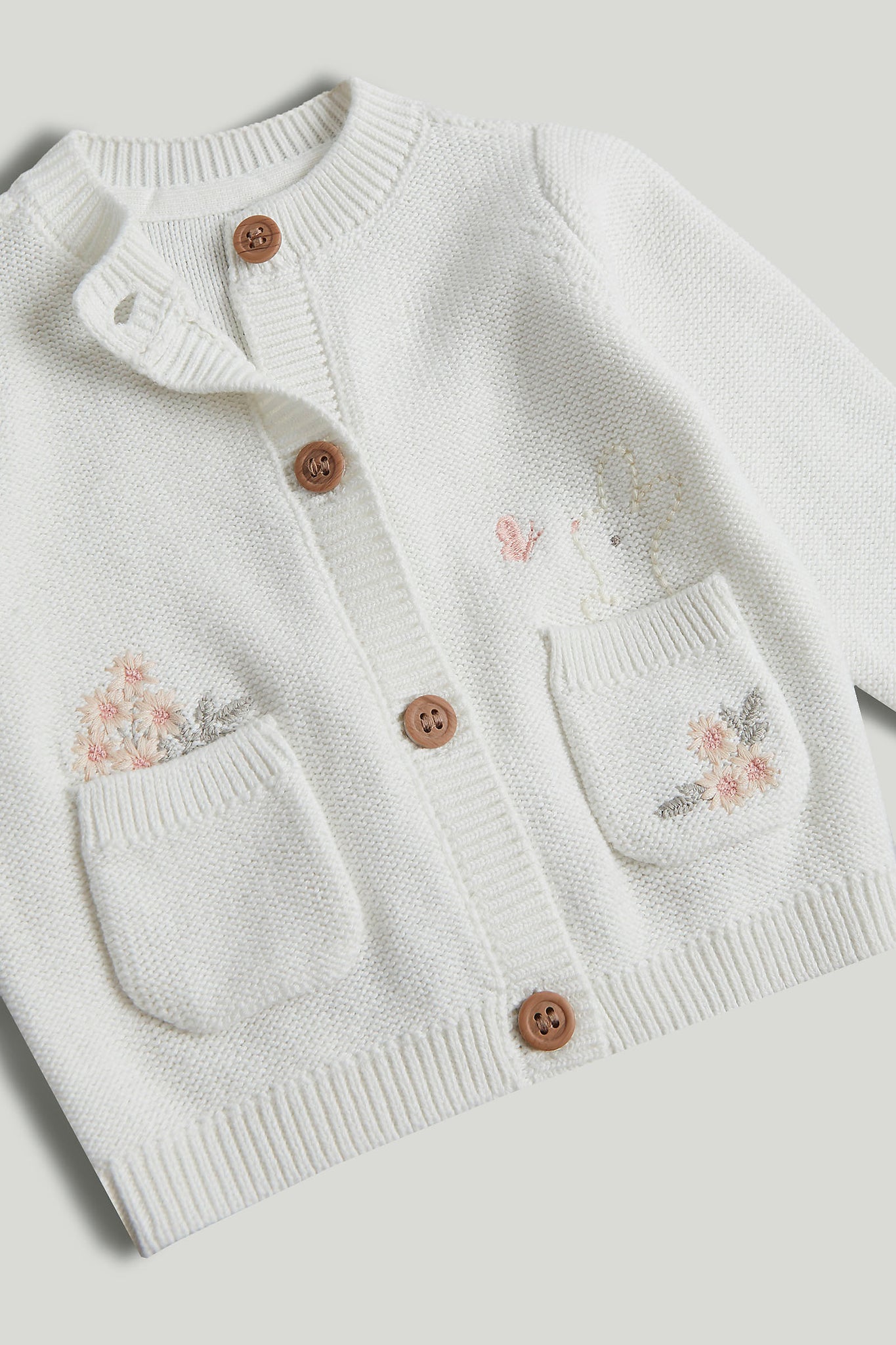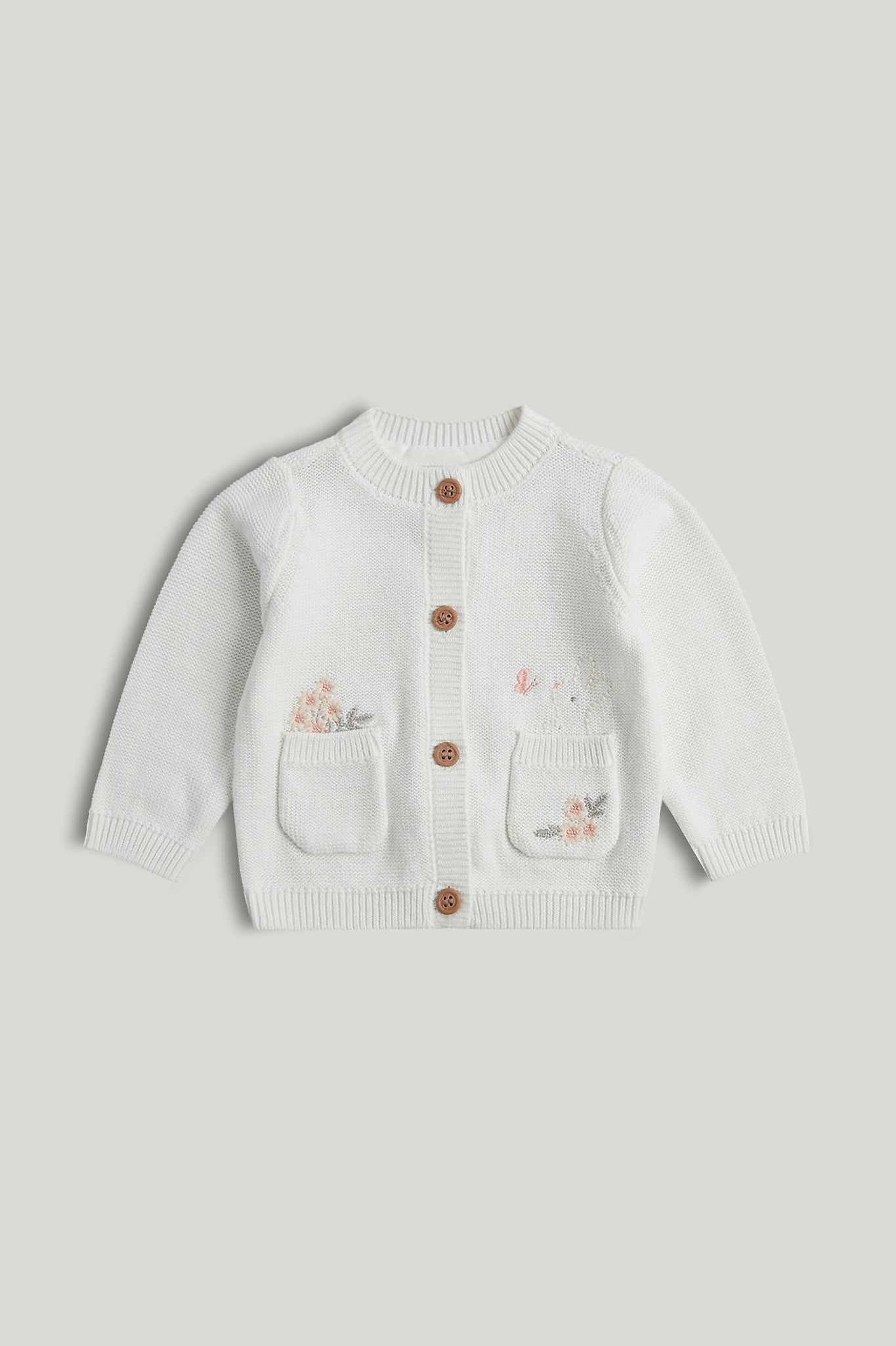 With a bunny character and embroidered flowers peeking from the pockets, this cardigan is crafted from soft, natural cotton, which is gentle against the most delicate skin. Part of our 'my first' collection, it makes a lovely gift for a newborn.