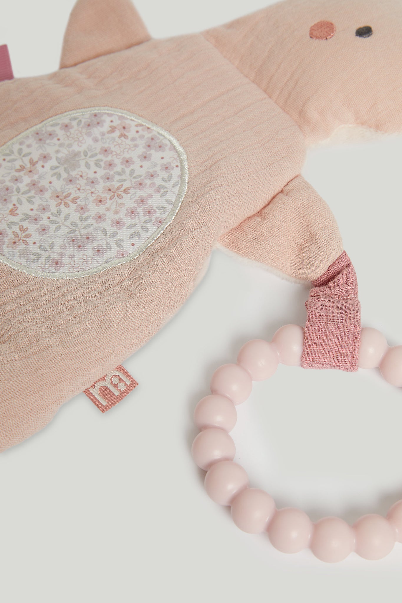 This soft and cuddly toy is designed to engage little hands with a variety of textures to explore. The crinkle sounds and soft, tactile textures in the ears are perfect for stimulating their senses while the contrasting colours offer an added visual delight, helping to capture their attention and encourage sensory development.