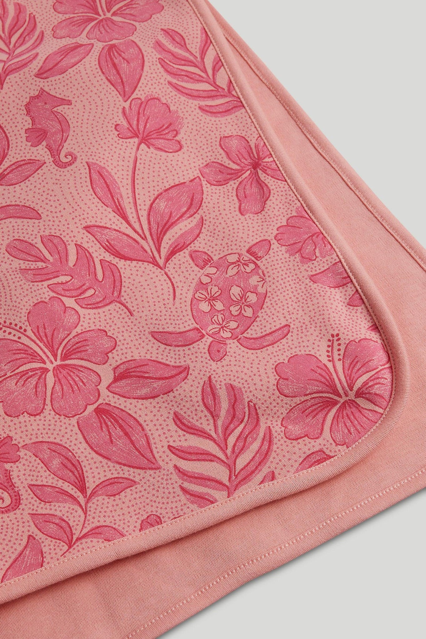 With a bright, tropical print, this cotton shawl makes a lovely gift for a new baby, and can be used as a shawl or a blanket to wrap every moment in comfort and softness.