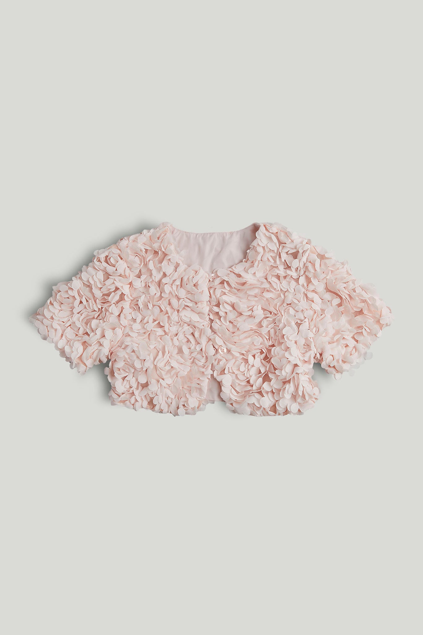 Filled with fabric flowers, this bolero is perfect for layering over a special outfit.
