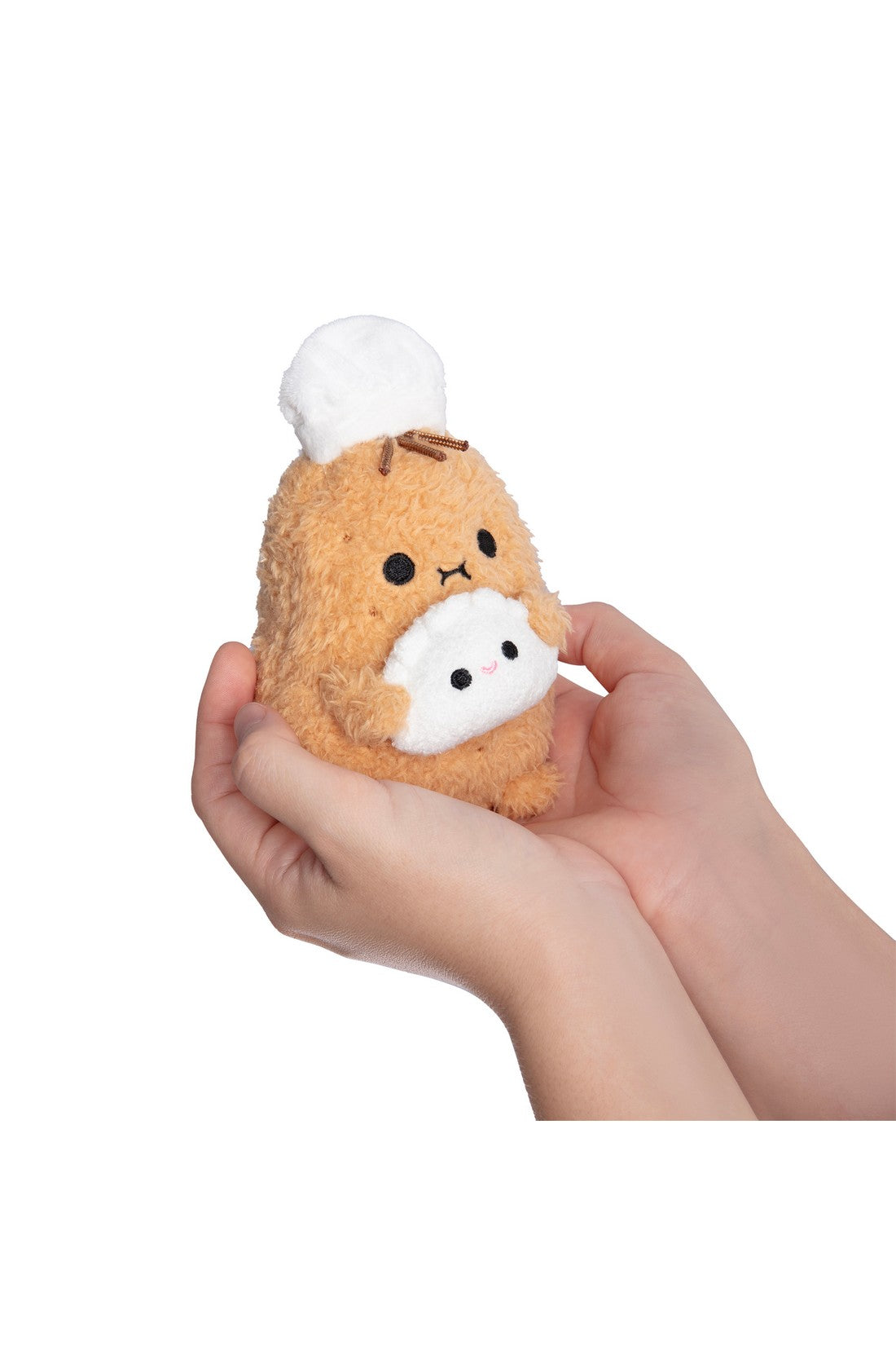 Bao Chef Ricespud is on kitchen duty, serving warm, freshly steamed cuteness! Your favourite mini potato plushie is cooking up their favourite comfort food. This spud is made from super soft brown fabric, with a tiny chef's hat and a smiley little dumpling in their hands. And they're stuffed to the brim for those extra chubby cuddles. With our new sitting down plushie position, you can sit this little potato plushie anywhere, whether you sit them on your bed, your desk or a shelf, they look adorable always.