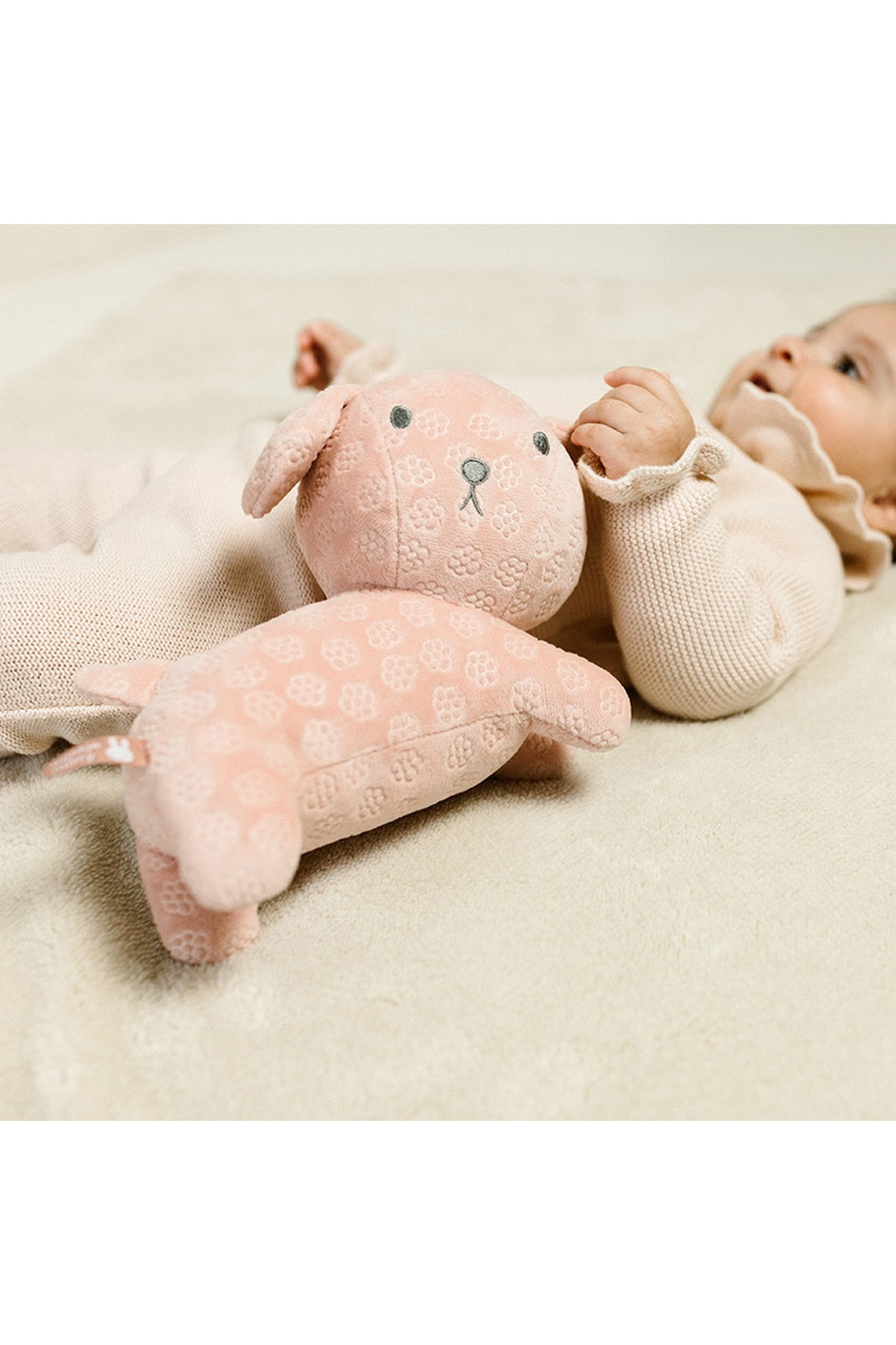 This cheerful snuffie cuddly toy is made to cuddle! The soft fabric has a unique design, in which punched flowers are incorporated. Snuffie is approximately 25 cm tall. The cuddly toy is also very nice to use as an accessory in the nursery or children's room.
