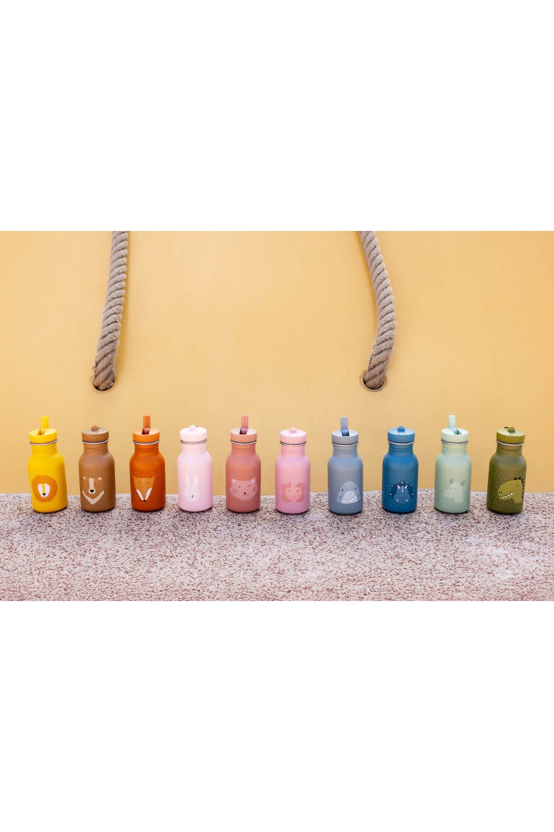 Water drinking bottles with our friendly animal face is the perfect, durable alternative to single use plastic bottles! These fun water drinking bottles are a must have when out and about with kids. With a variety of animals to choose from, every little one will find its favourite companion to head out on another great adventure! This bottle is made out of stainless steel, making it the perfect, durable alternative to single use plastic bottles. The bottle is light, well resistant to any impact and does not release any toxic substances to the water. The sleek design makes it easy to clean. Hand wash the bottle with soapy water to maximize the lifespan of your bottle. The bottles are completely leakproof. The handy cap is designed with little kids in mind and can easily be opened and closed due to the handle on top. Each bottle comes with a loop to carry the bottle or hang it onto a backpack. Every animal is available in 2 sizes. The small bottle has a capacity of 350ml. The big bottle can contain 500ml. Both bottles have a slim design so it fits well in children’s hands and can easily be stored away in a backpack or satchel. The water bottle comes with a cap.