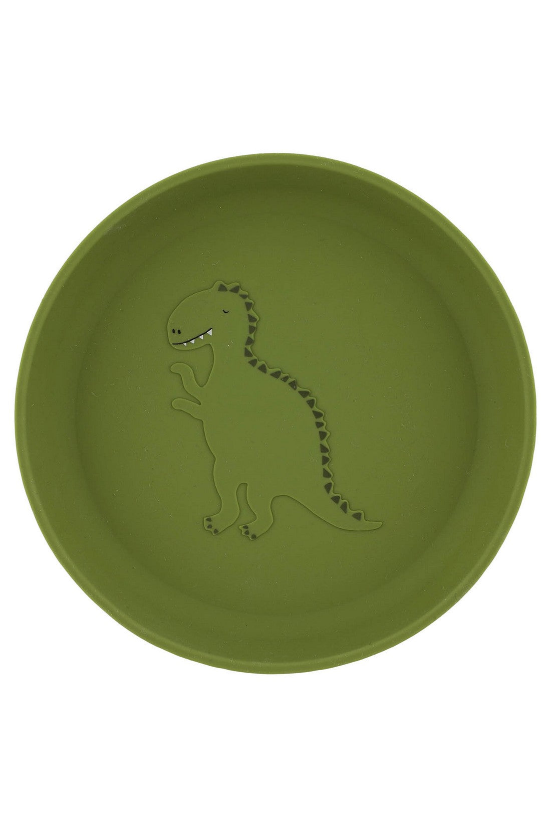 "Our animal friend is hungry! Fill up this plate and enjoy a good meal together. The high rim allows easy scooping for children learning to eat on their own. The silicone plates are stackable for easy storage.