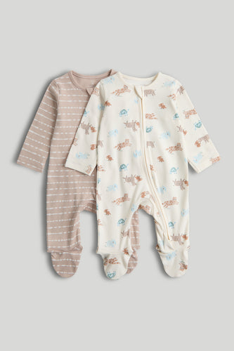 • Mothercare 2 Pack Safari Zip-Up Sleepsuits