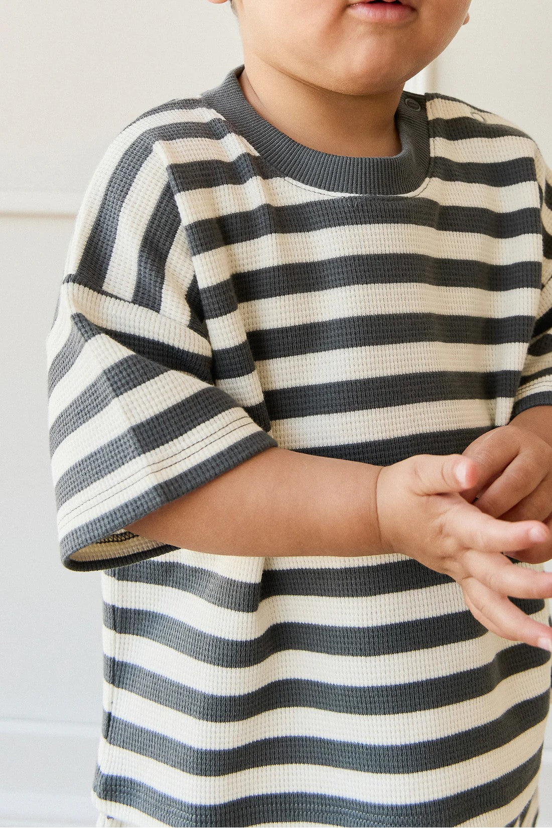 Jamie Kay Organic Cotton Waffle Leith Tee - Oliver Stripe Atlantic/Cloud