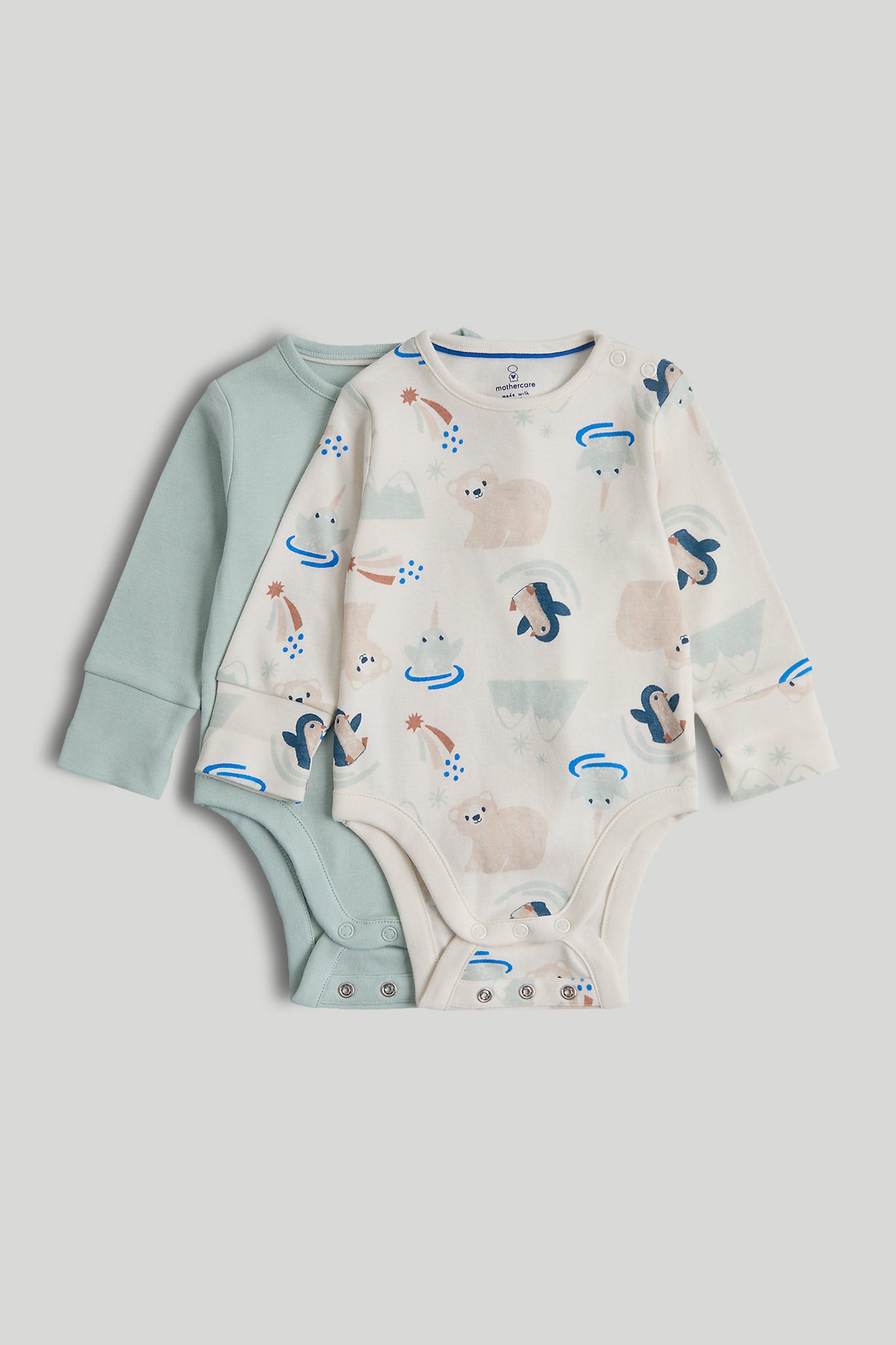 | Name: | Mothercare 2 Pack Blue Penguin and Bear Extendable Bodysuits |