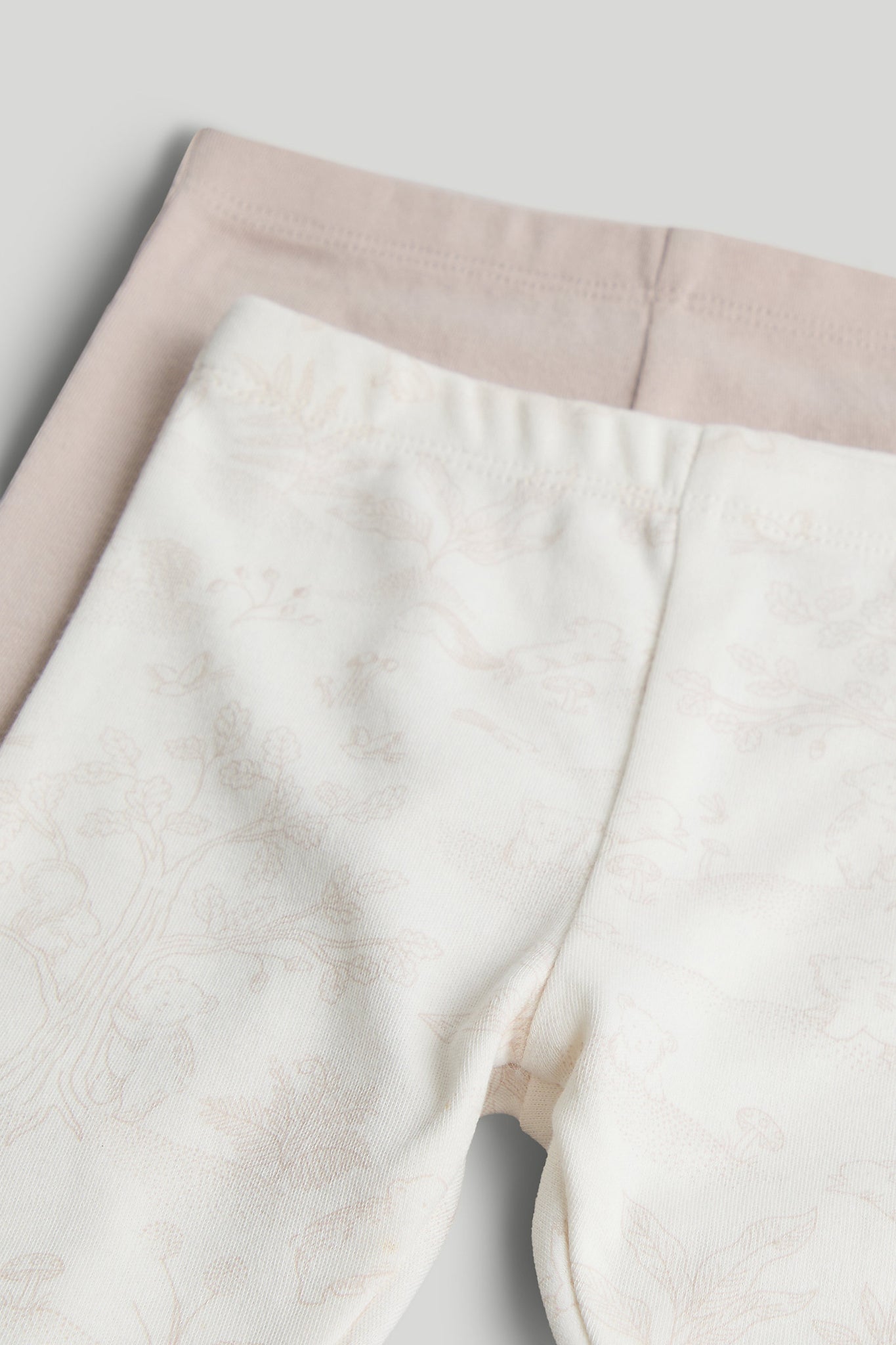Two pairs of cotton trousers with integral feet crafted from soft, comfy cotton to nurture your little one. Designed carefully for baby's first wardrobe, this set includes both beige and white leggings.