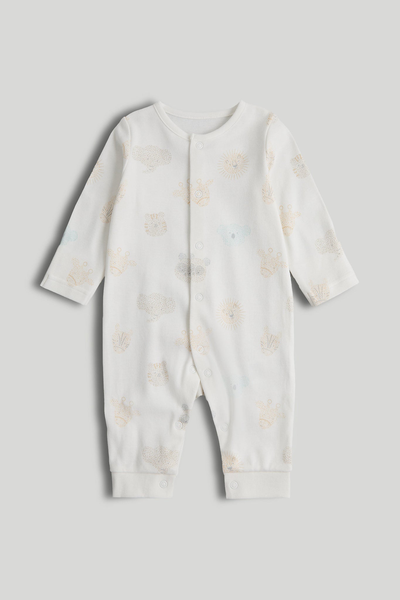 Fun animal prints meet soft, breathable cotton in these adorable footless sleepsuits. Thoughtfully designed with easy popper fastenings and scratch mitts for comfort and convenience. A lovely gift for a new baby.
