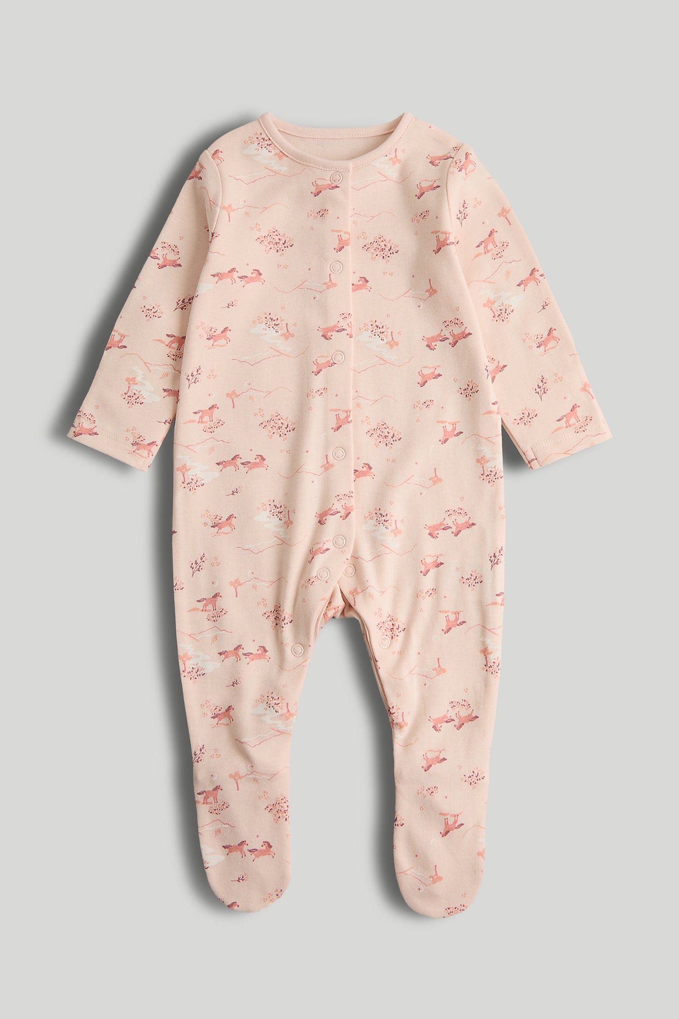 Designed for cosy sleeps and playful mornings, these soft cotton sleepsuits are gentle on delicate skin. Scratch mitts on the smallest sizes offer protection in those first months while popper fastenings make dressing and nappy changes easy.