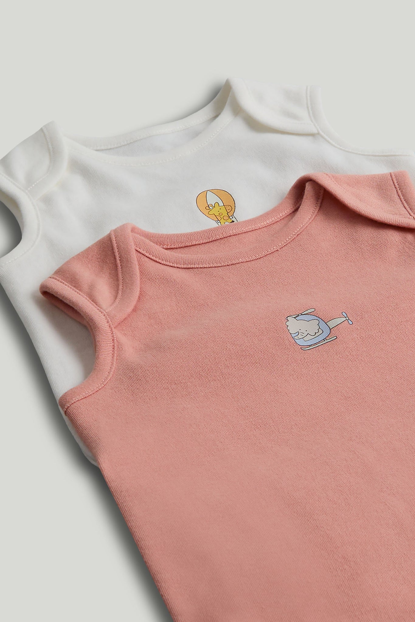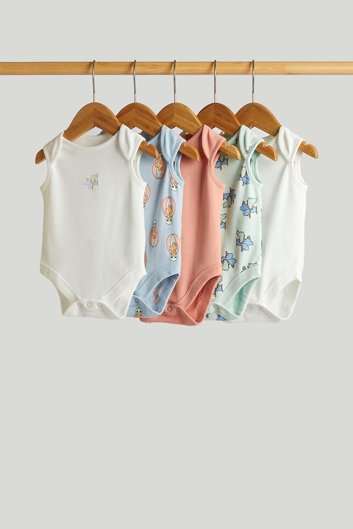 Add some fun to layering with these comfortable cotton bodysuits. Sleeveless for warmer days, each all-in-one bodysuit in this set features an envelope neckline and popper fastenings to make dressing and nappy changing easier.