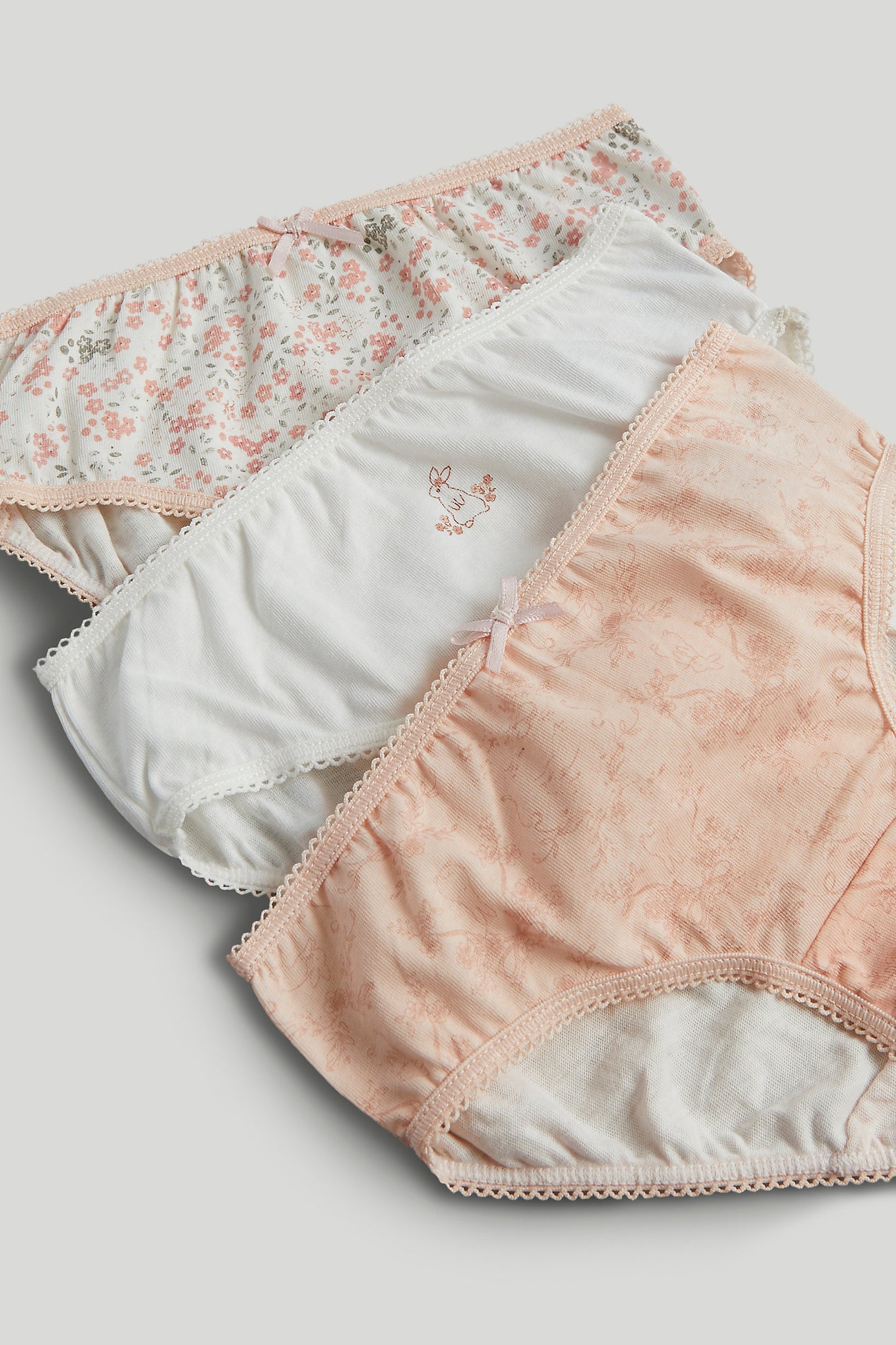 Each pair of comfy cotton briefs in this set features pretty picot trim and a small bow at the centre of the elasticated waistband.