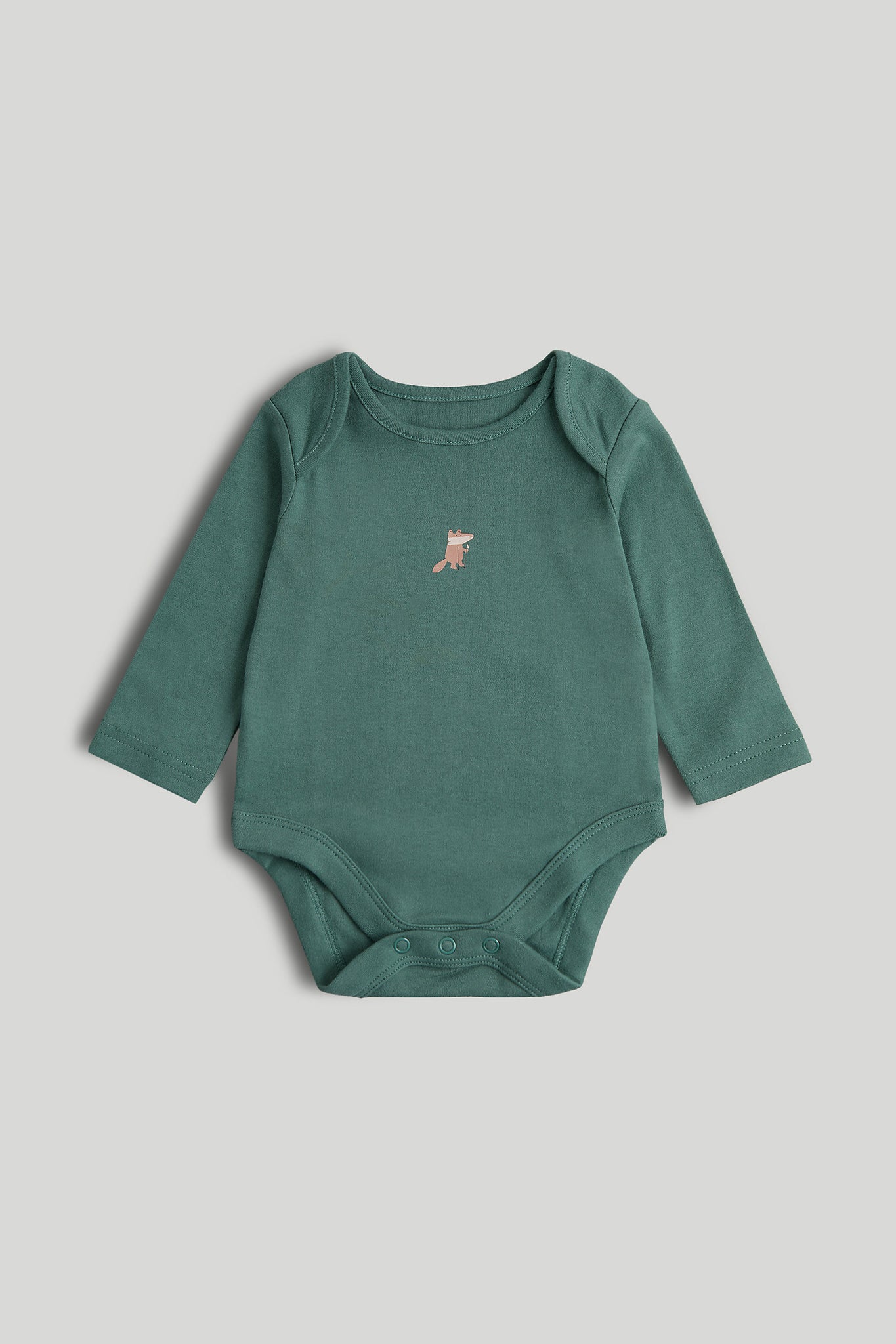 Five comfortable cotton bodysuits with long sleeves for colder days. Each all-in-one bodysuit in this set features an envelope neckline and popper fastenings to make dressing and nappy changing easier.
