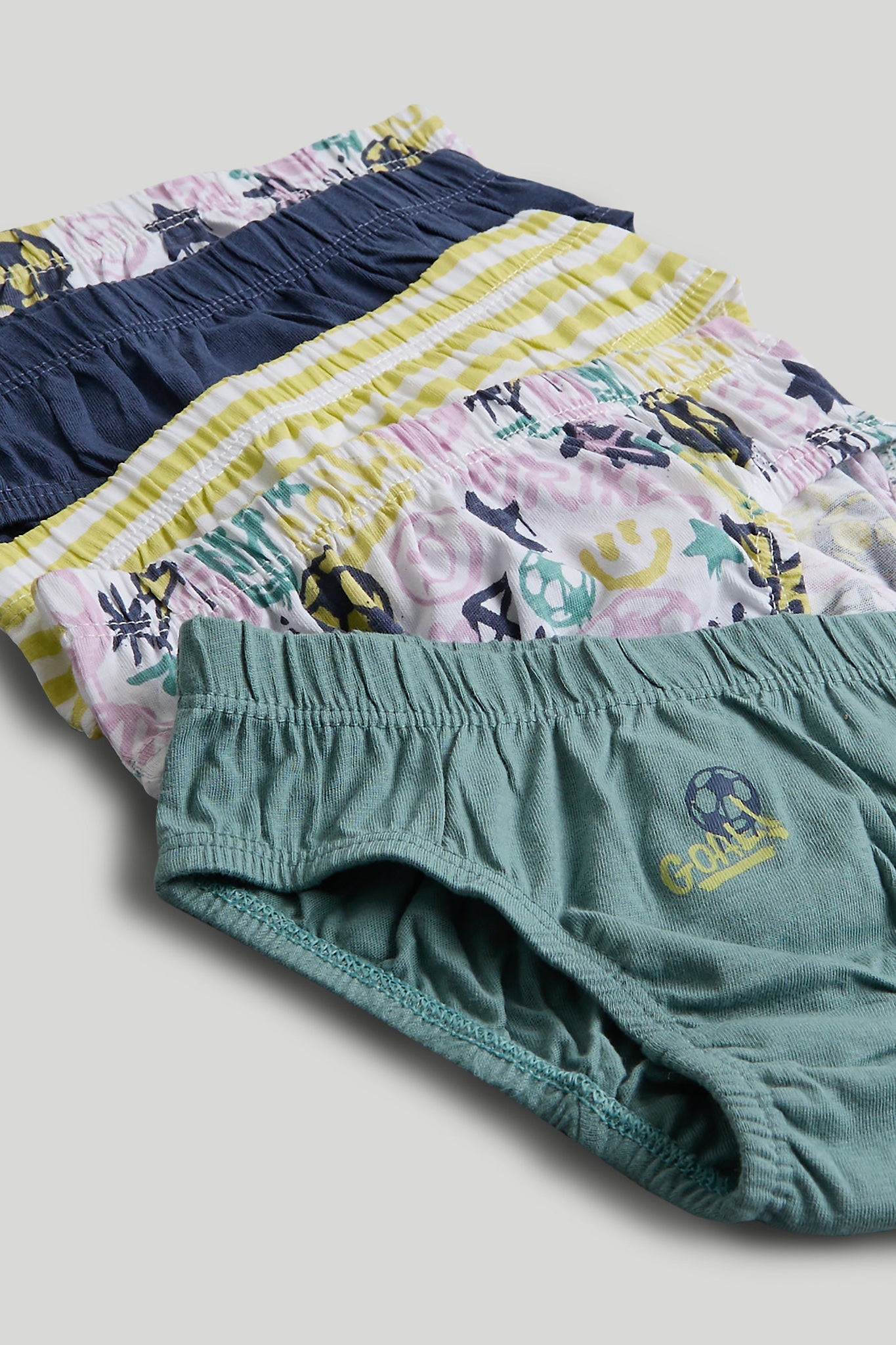 Refresh their essentials with this pack of five pure cotton briefs, which feature fun prints and bright stripes.