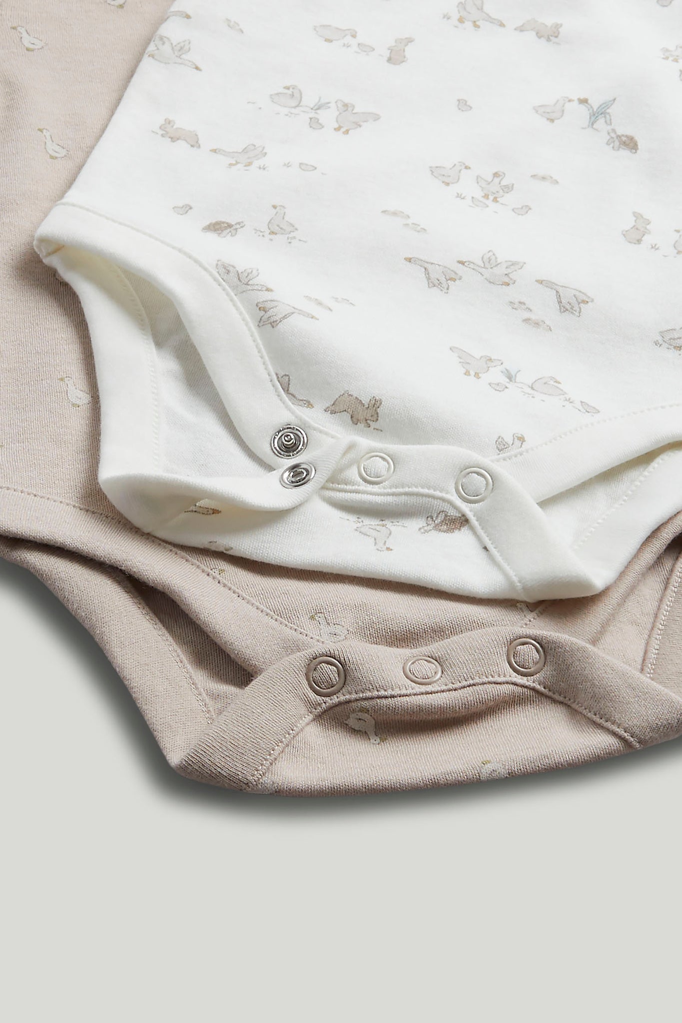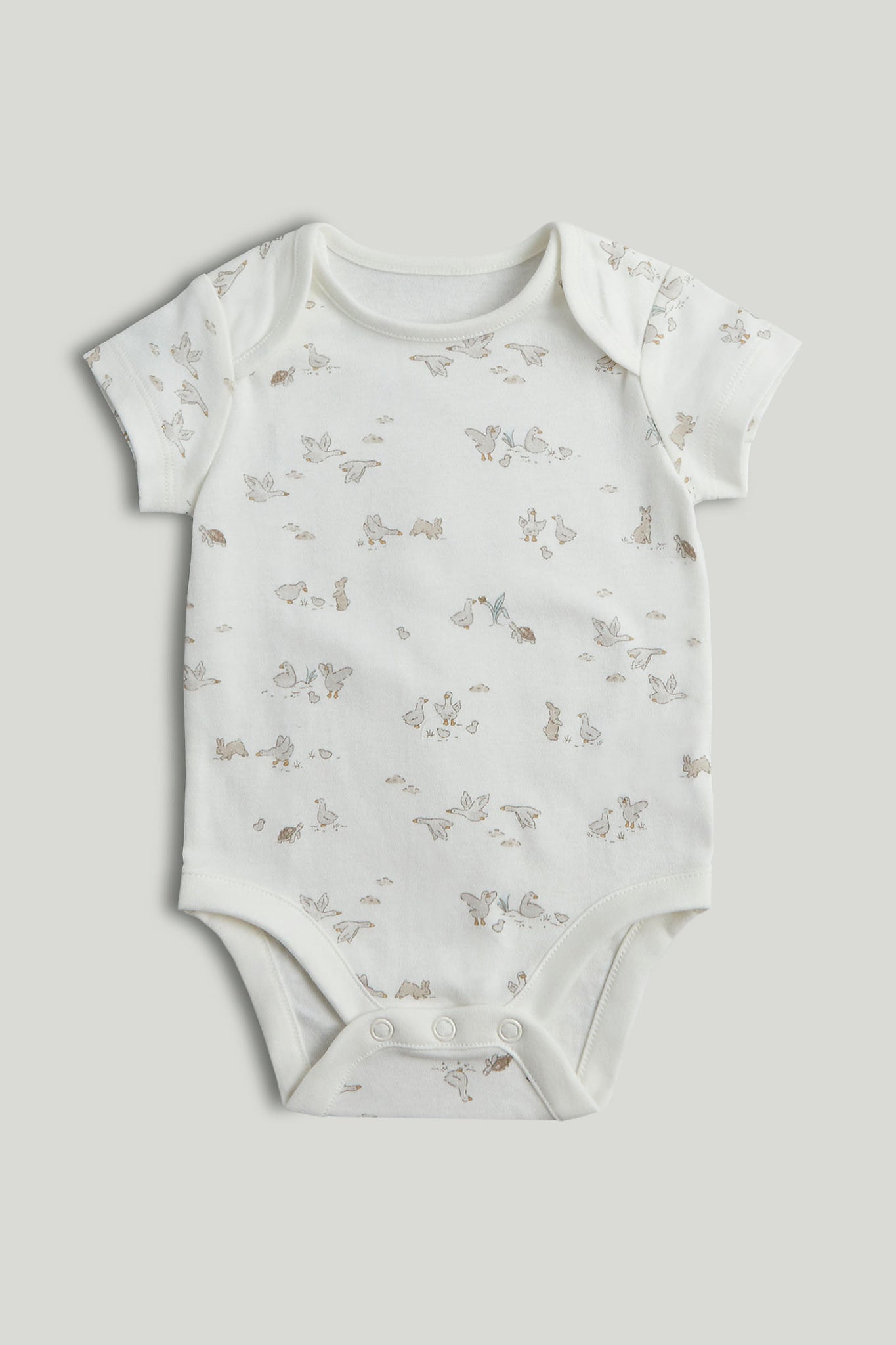 Natural cotton bodysuits from our 'my first' collection for newborns. Including a mix of printed designs in soft, neutral colours, each short-sleeved bodysuit features popper fastenings for fuss-free nappy changes.