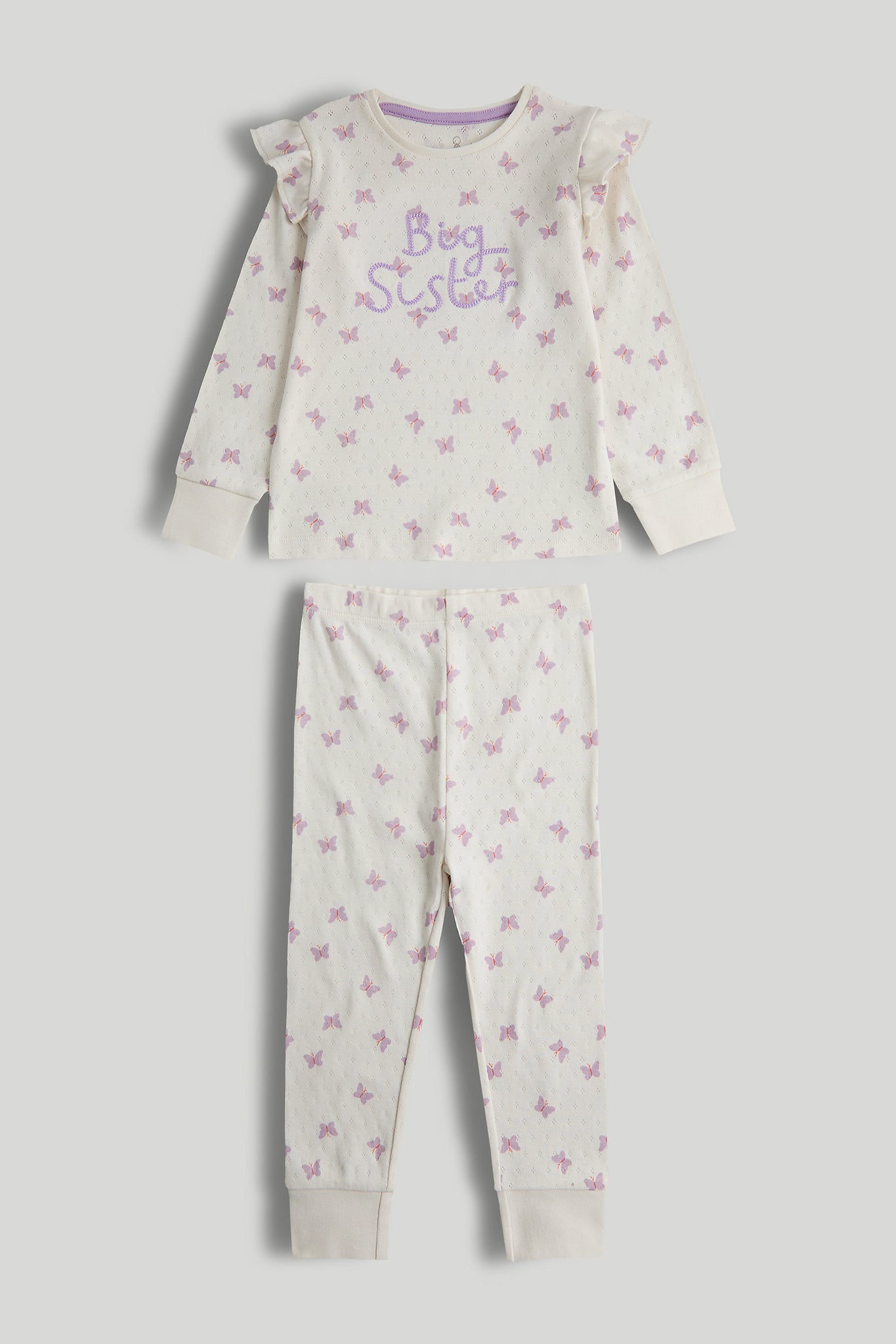 The perfect pyjamas for a proud big sister. Crafted from pretty pointelle cotton to keep them all night comfy, they feature fluttery frills, a delicate print and sweet embroidery.