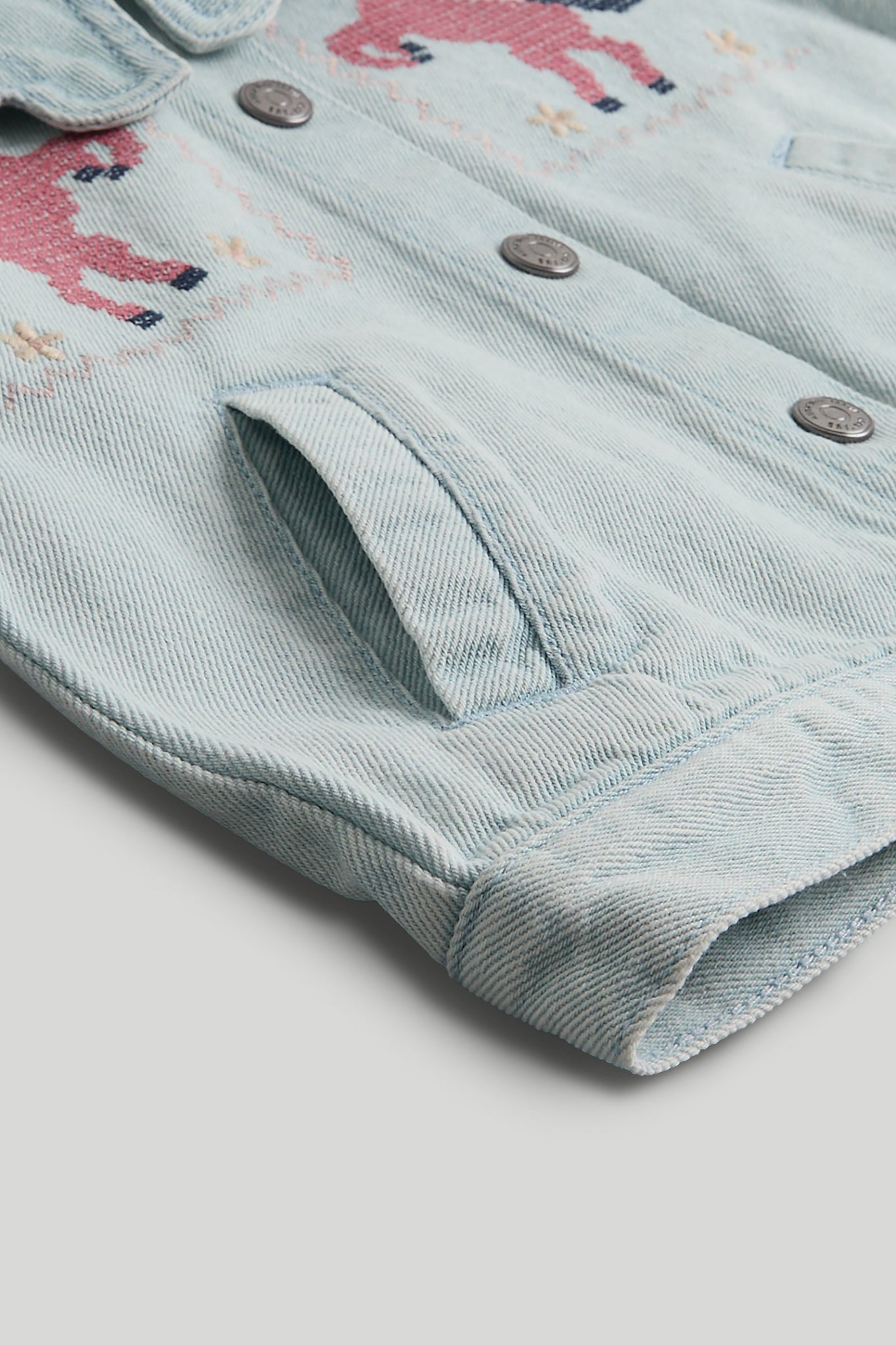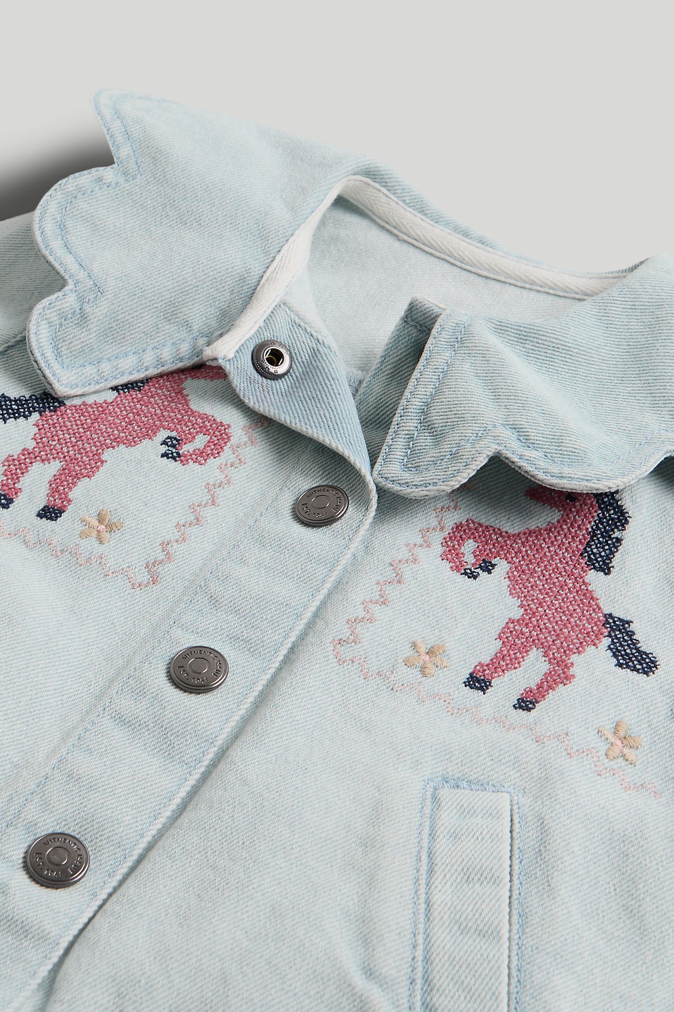 Introducing their new favourite jacket. With an oversized collared neckline and poppers at the front, it styles comfortably over any outfit. Crafted from naturally soft and durable cotton denim for wearable comfort.