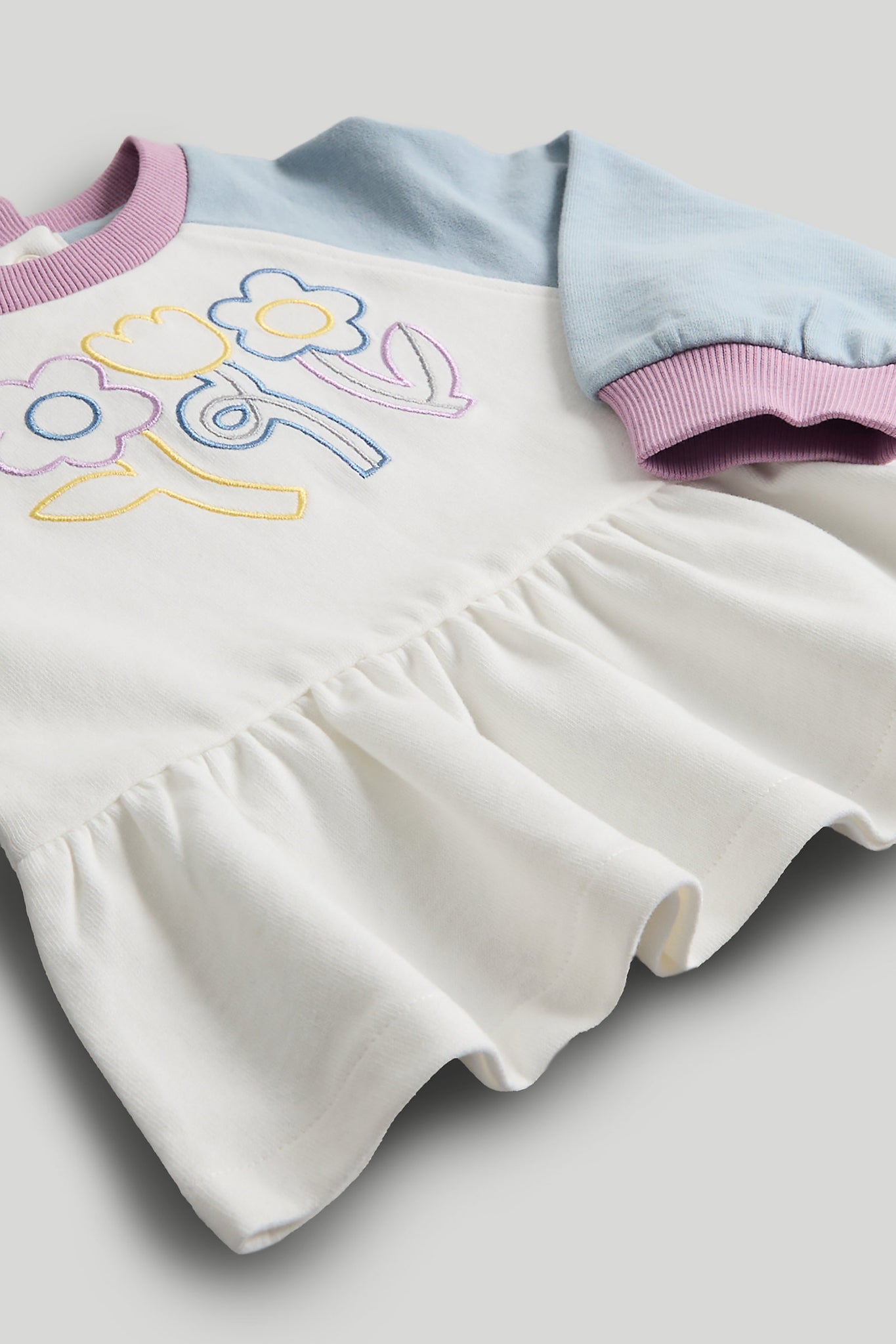 Made from pure cotton with gently gathered raglan sleeves for comfort, this layer is ready to play. Decorated with embroidered flowers and finished with a frill hem, it's easy to mix, match and layer.