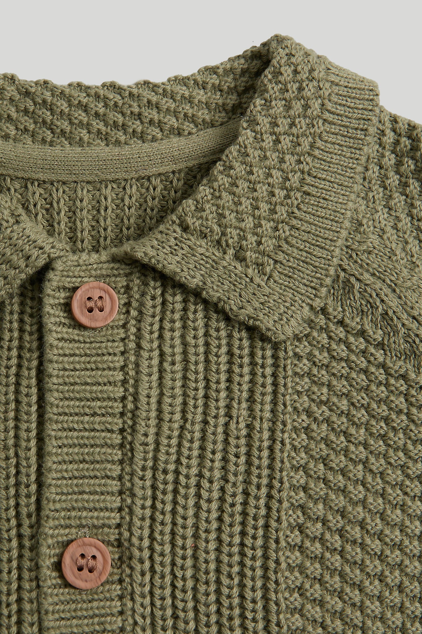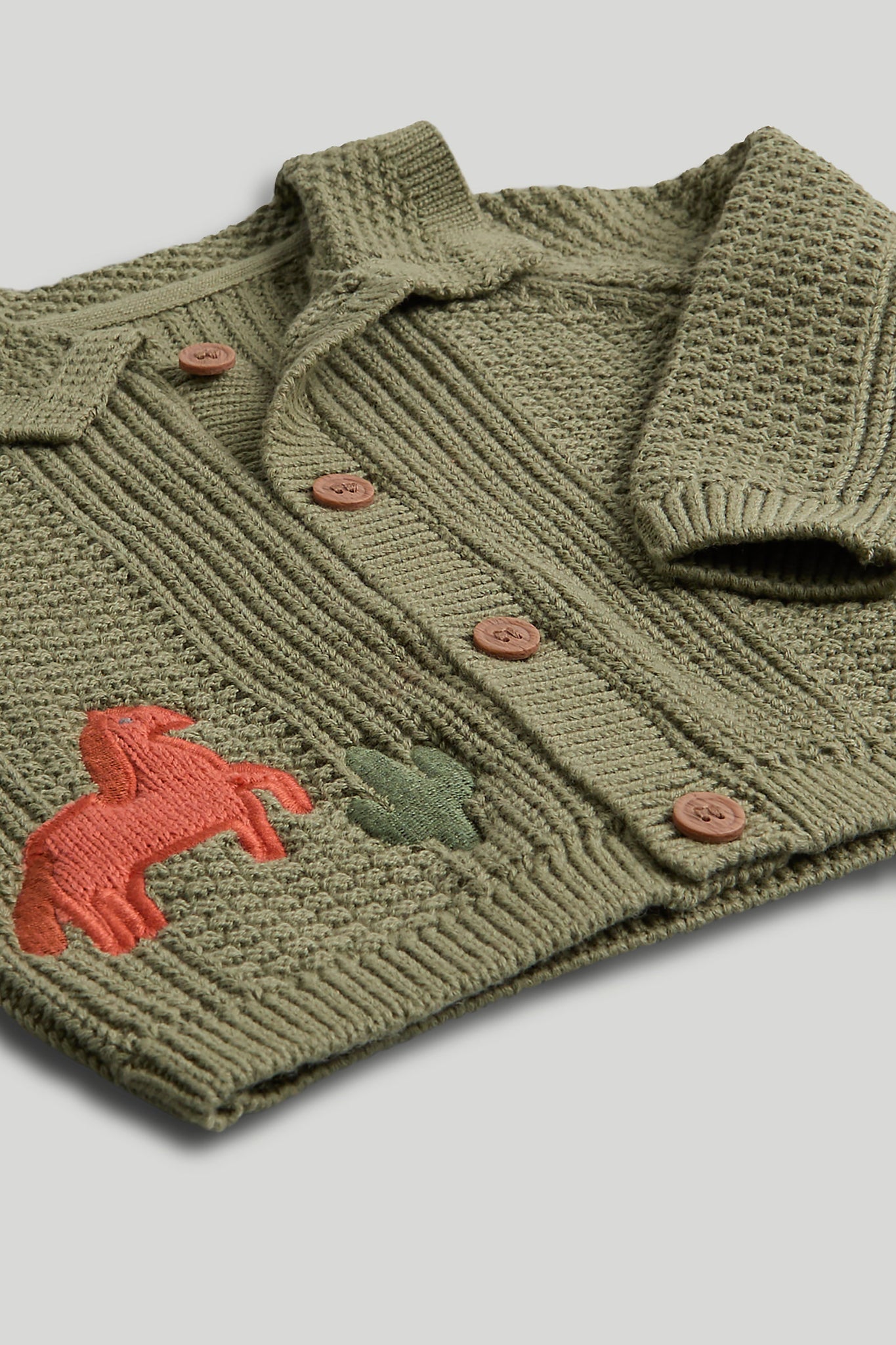 Crafted from cotton in a natural green colourway, this cardigan is made with cosy comfort in every stitch. Soft and snug with an applique character at the hem, it's easy to layer over any outfit.