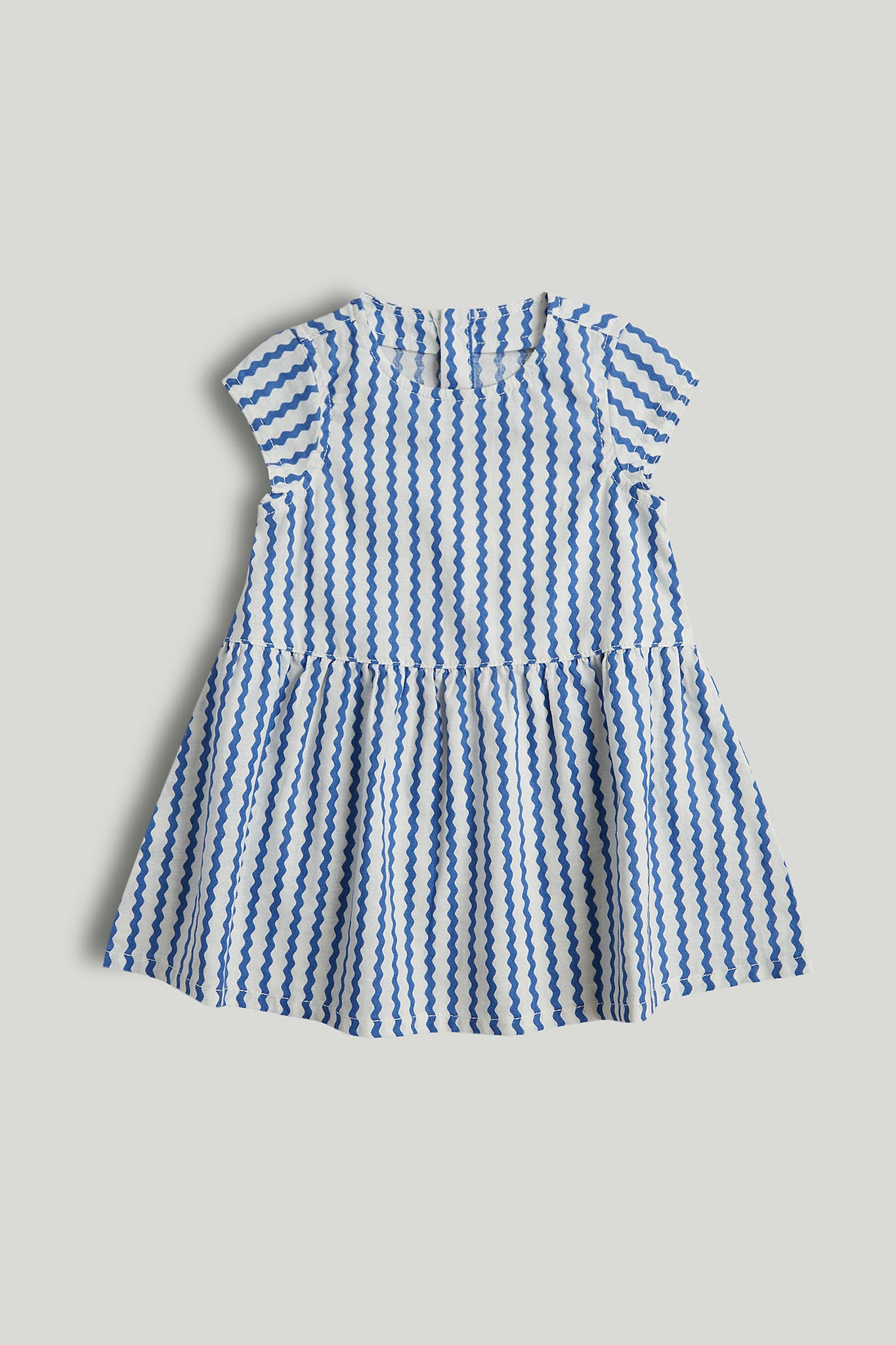 Effortless style for playdates or parties, this breezy cotton dress features a linen-look finish with wavy stripes and a softly dropped waist seam. It's designed for all-day comfort and carefree movement.