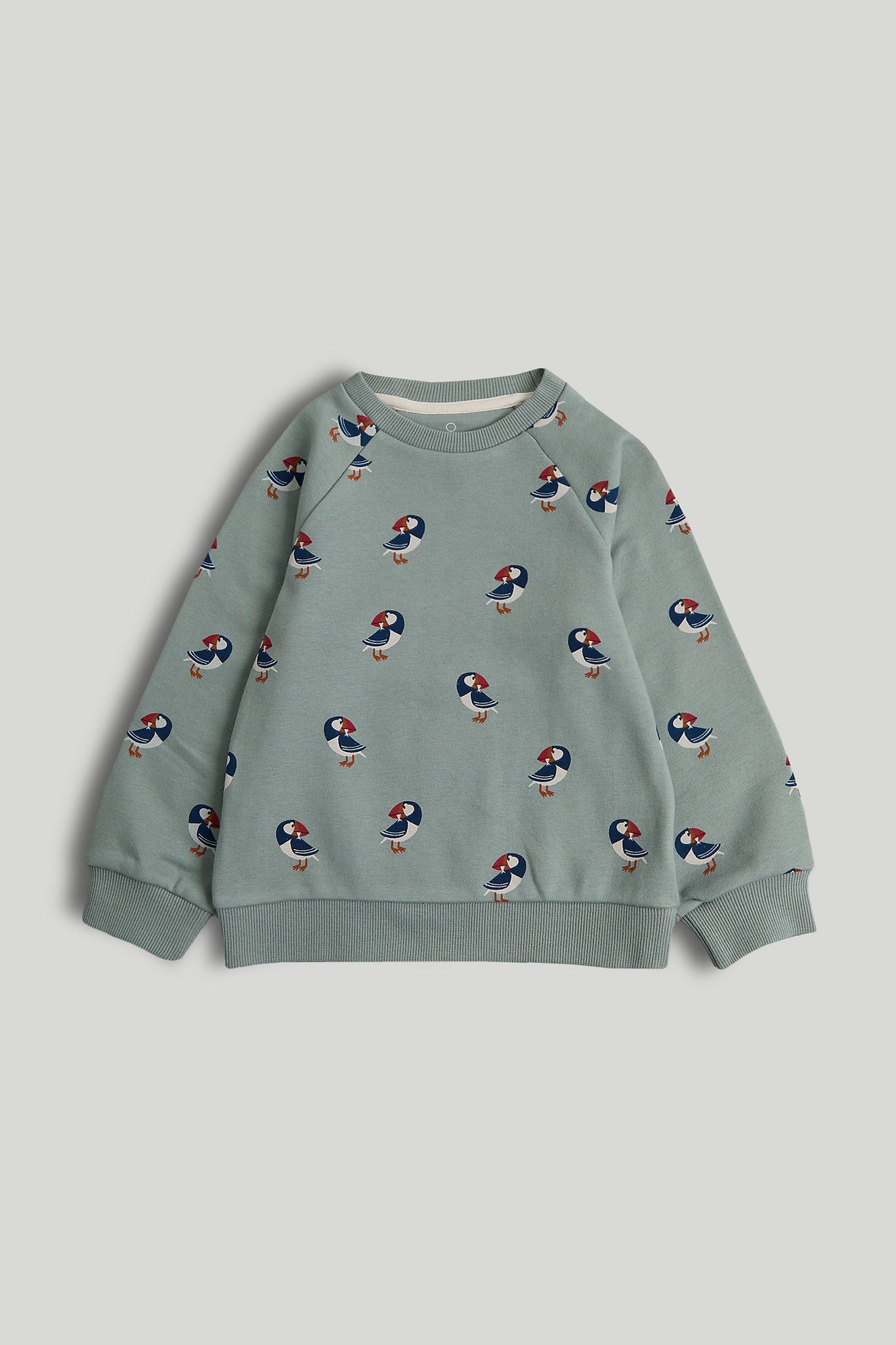 A relaxed-fit crew neck sweatshirt with fun prints. Brushed inside so it feels soft against young skin, it's the ideal pull-on layer for chilly day play.
