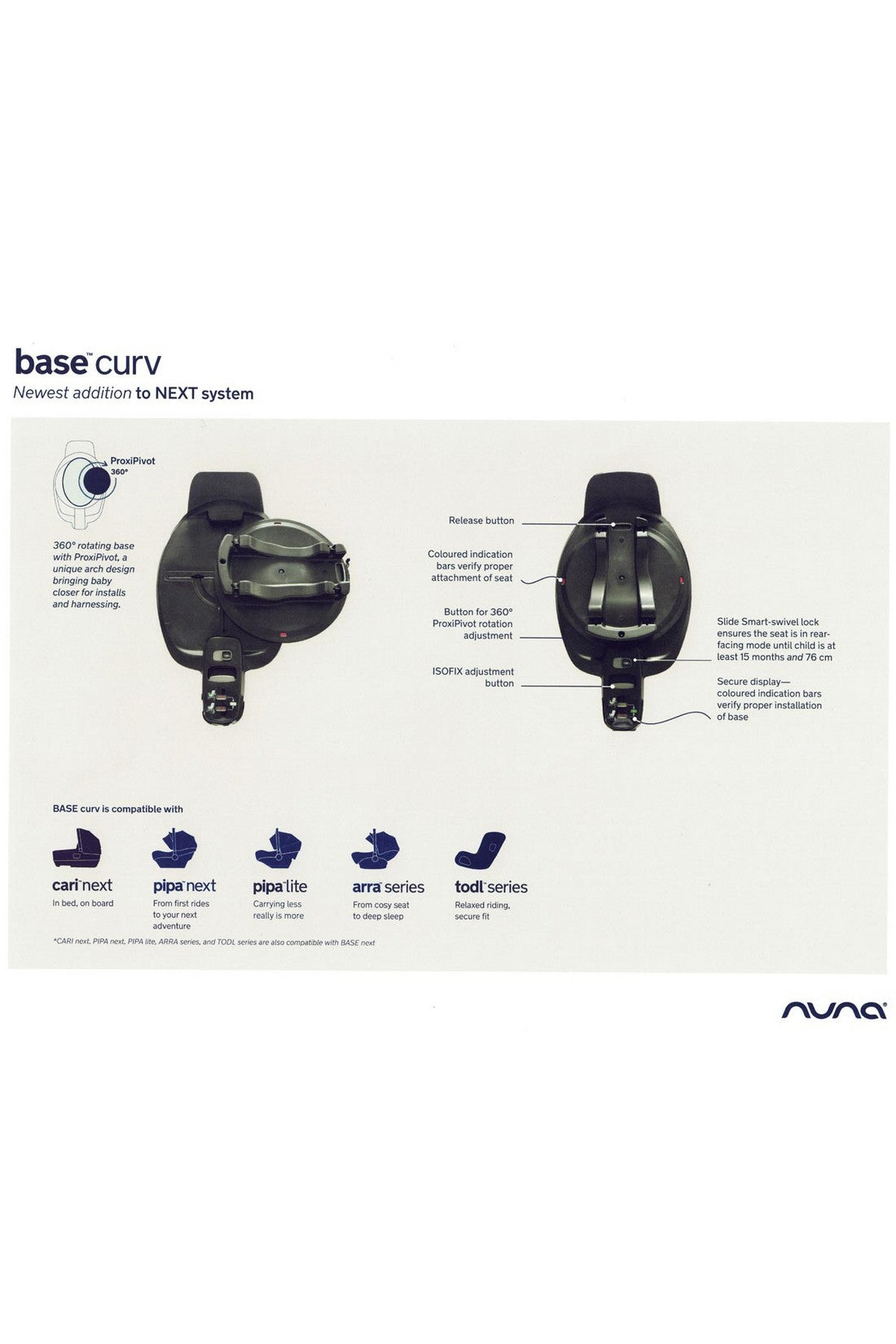 The BASE curv is engineered to better align your child’s car seat with your body's natural movements so you can say goodbye to awkward angles and daily back strain. It conveniently rotates 360° and glides the seat out towards you in one smooth motion with its slide-out ProxiPivot™ technology–providing an ideal position for loading and unloading your little adventurer. And it is NEXT system™ compatible, providing versatility to support their travel solution needs through the first four years.